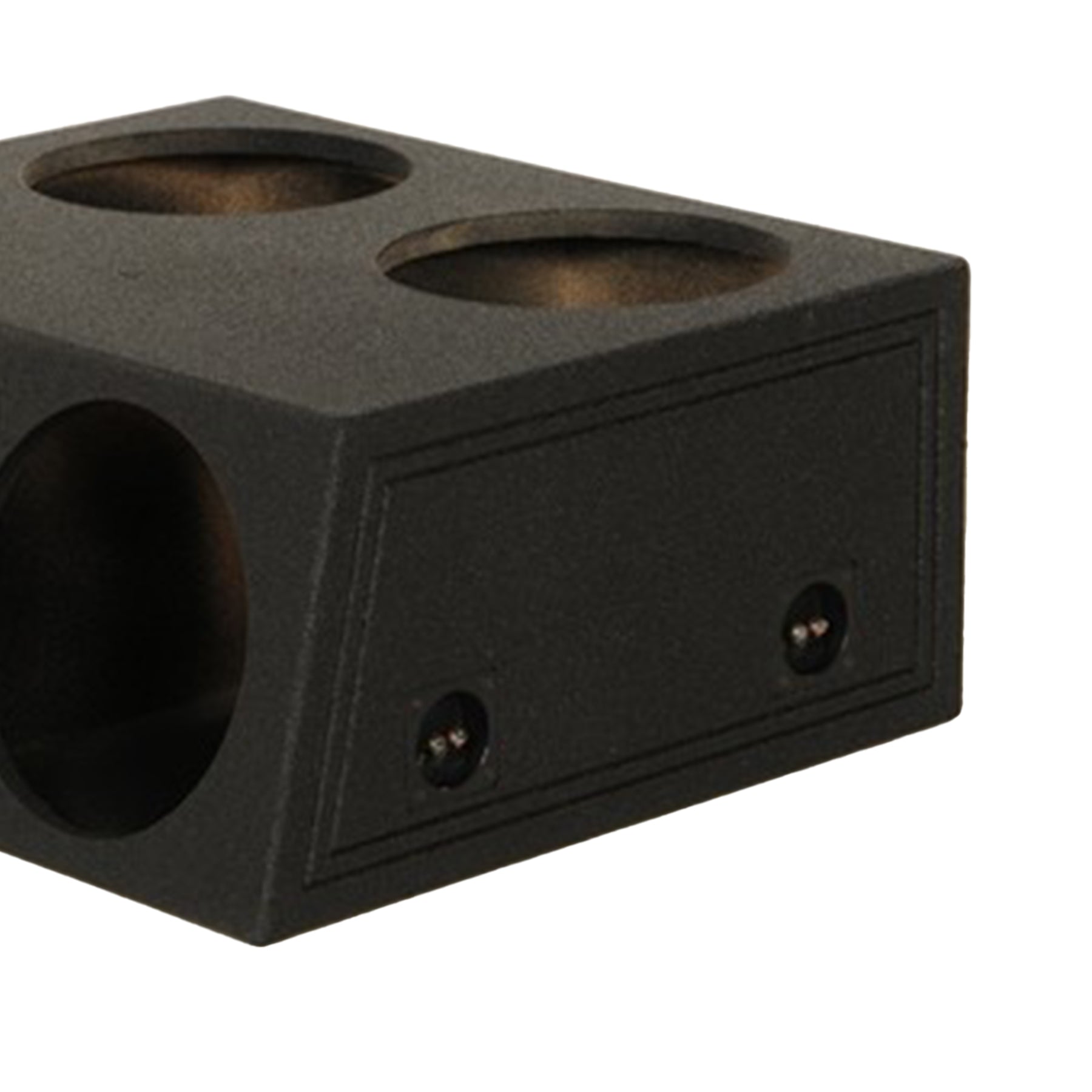 Constructed from durable MDF with internal bracing, the subwoofer box keeps your subs stable under heavy load, reducing flex and unwanted resonance. Its spray-on bedliner coating gives the enclosure a rugged, moisture-resistant finish that stands up to impact, scratches, and time. The textured surface adds grip and a professional appearance that looks as tough as it sounds.