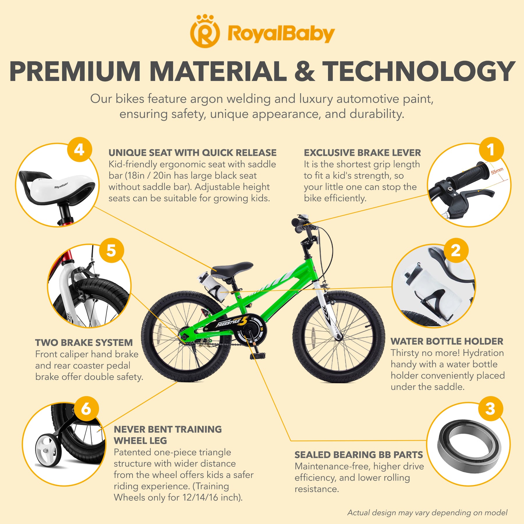 • RoyalBaby Freestyle kid's BMX-style bike is all about fun, creativity, and freedom with a sporty look for the next cycling star