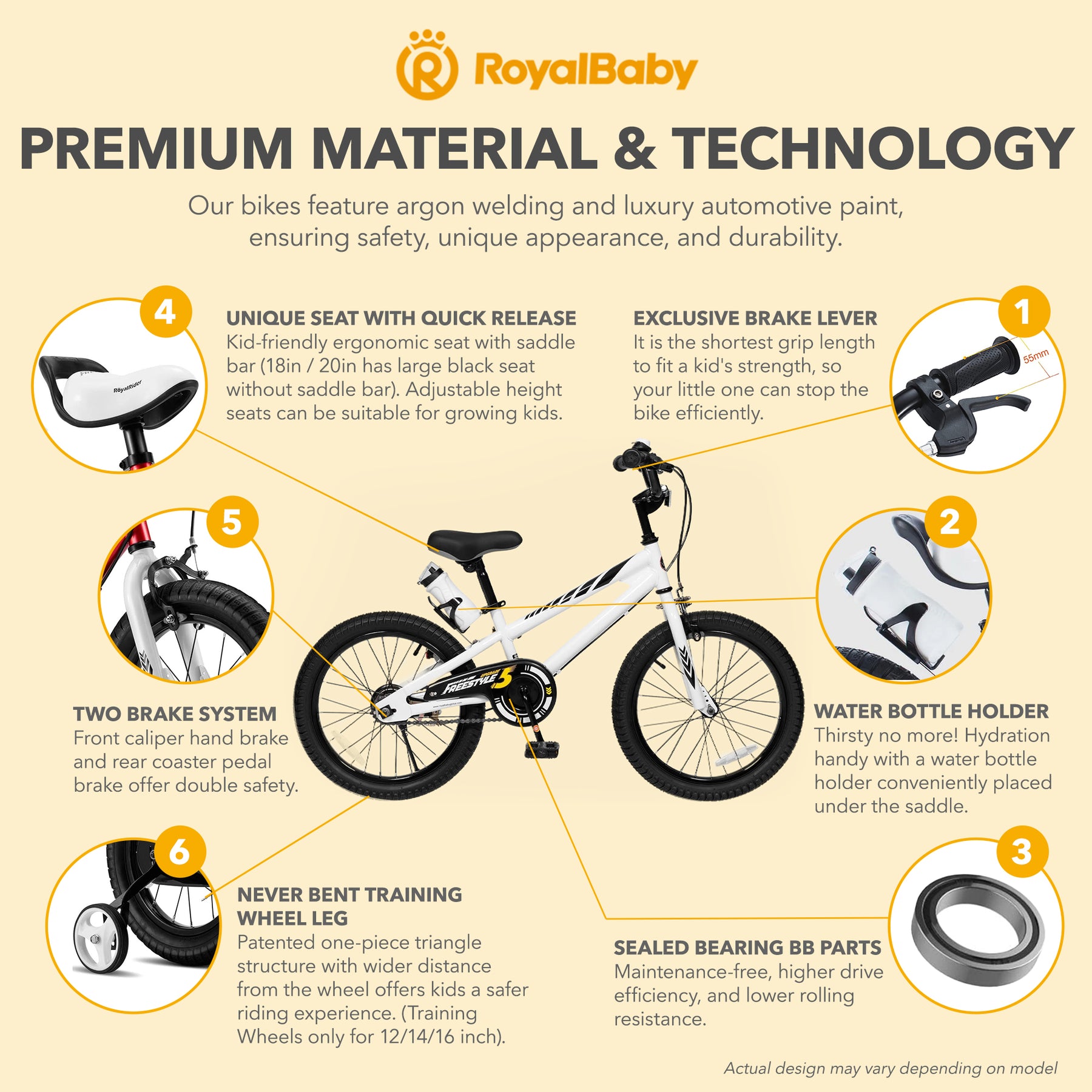 • RoyalBaby Freestyle kid's BMX-style bike is all about fun, creativity, and freedom with a sporty look for the next cycling star