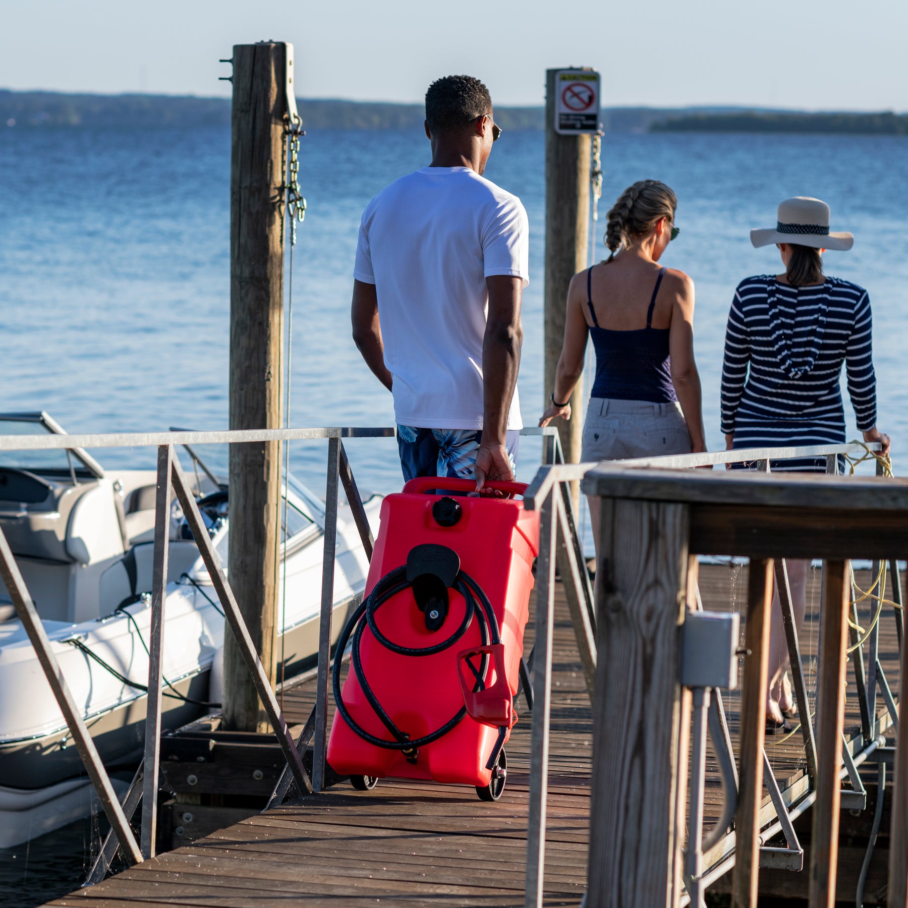 • 14-gallon fuel can includes 10-foot long fuel hose with siphon pump and pump holder handle