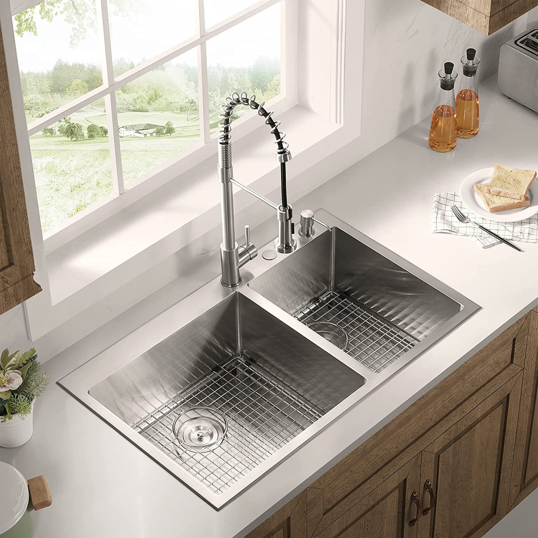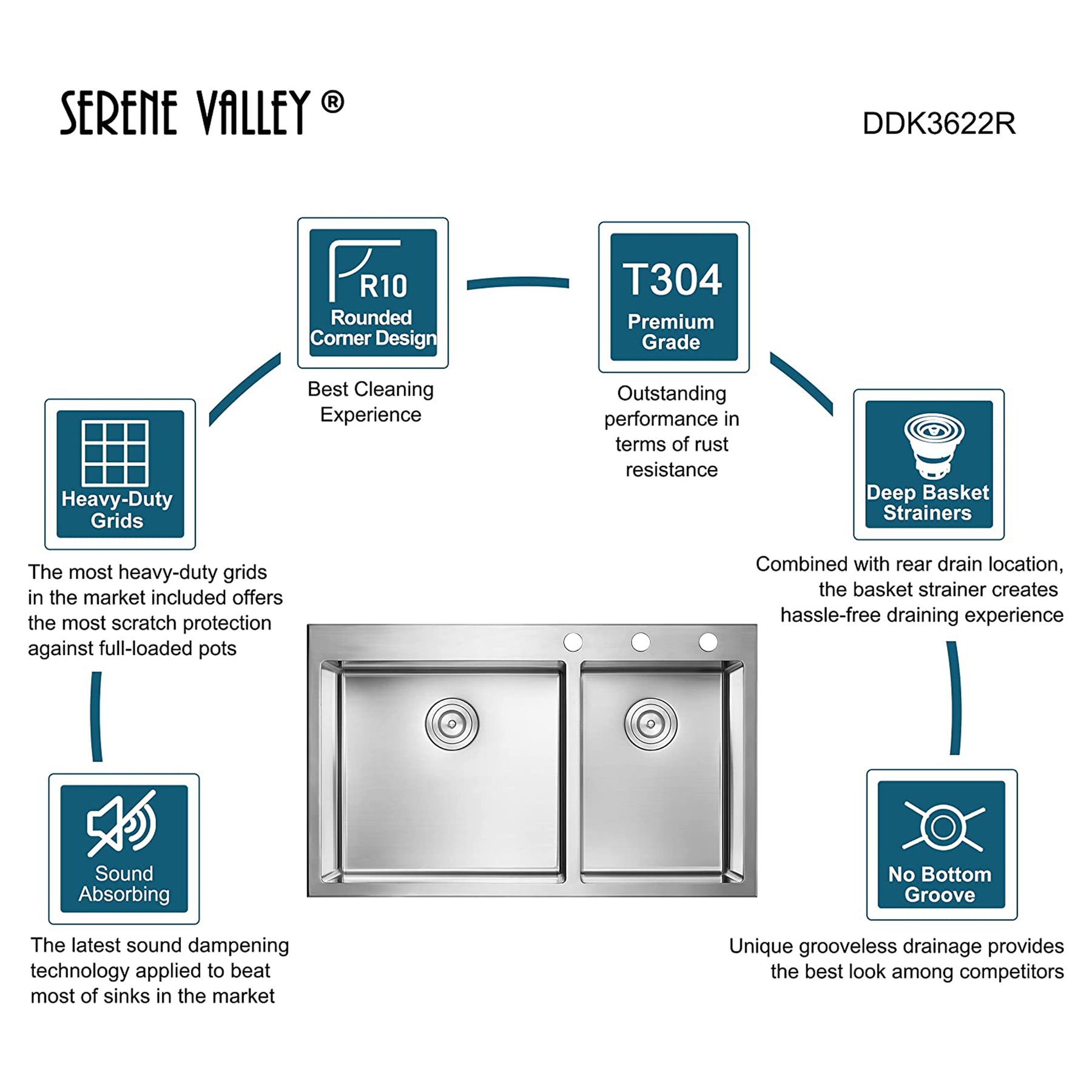 Serene Valley Stainless Steel Dual Mount Kitchen Sink w/Rear Drain & Grids(Used)