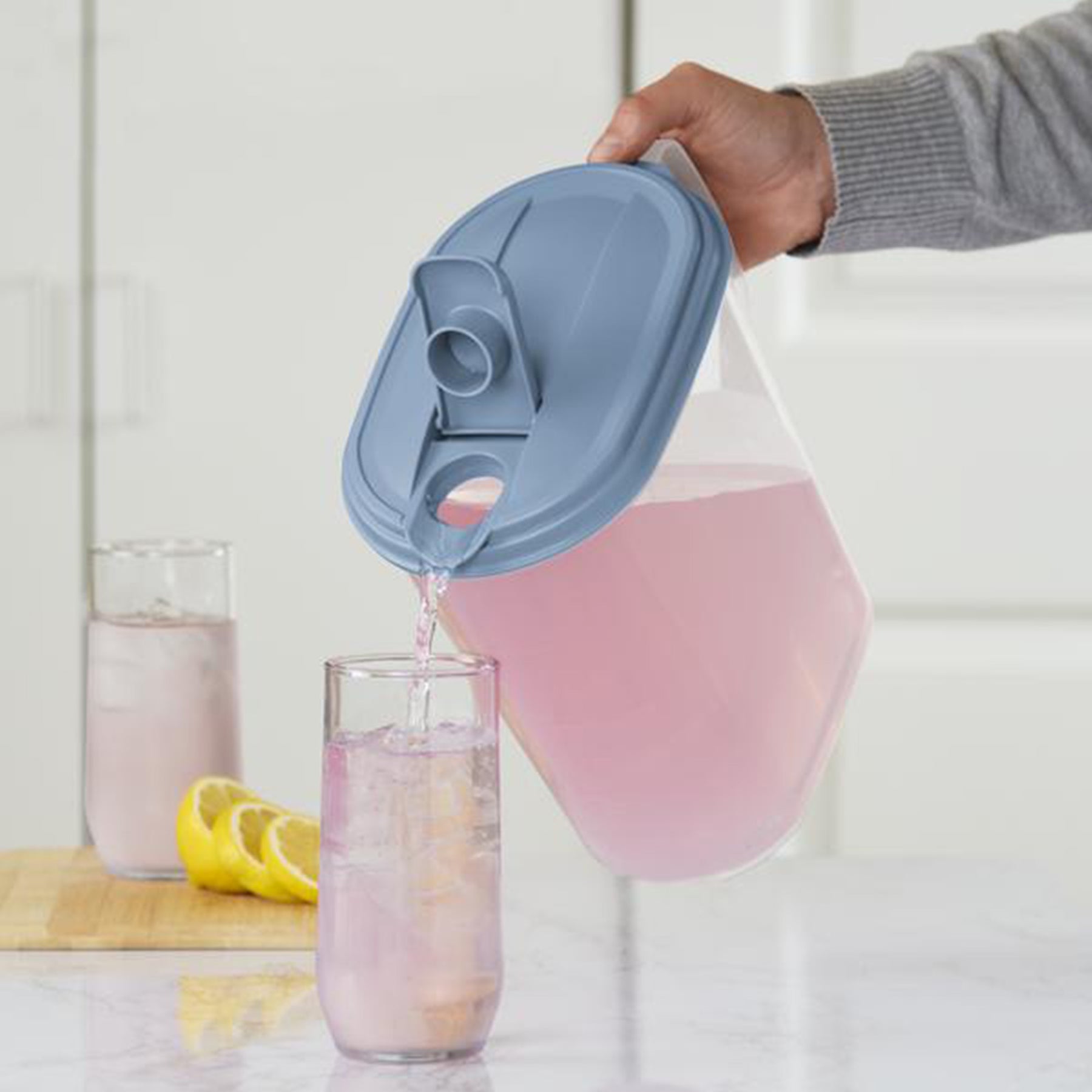 Always have your favorite drink ready to go and chilled in the fridge with the Sterilite 1-Gallon Plastic Hinged Pitcher.