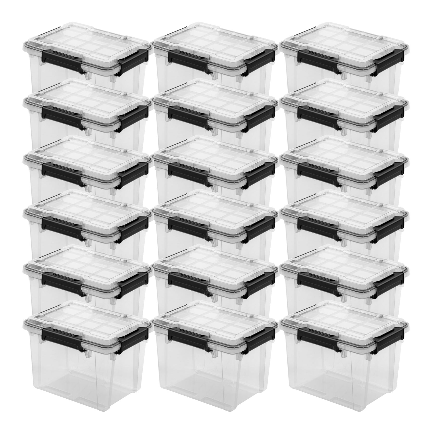 Sterilite 19Qt Gasket Box, Stackable Storage Container with Lids, Black, 18 Pack