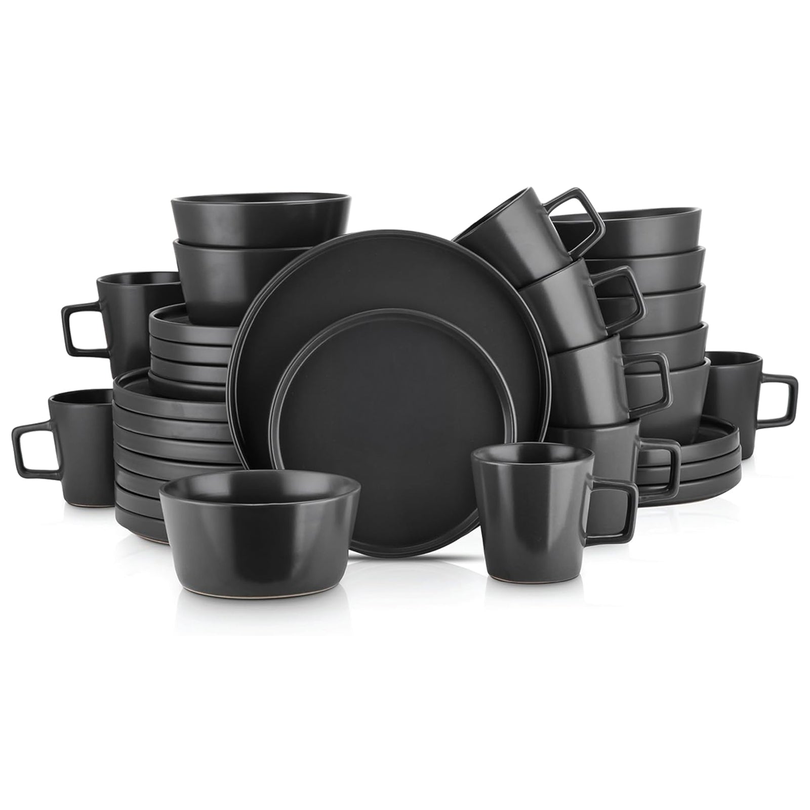 Stone Lain Celina Stoneware 16 Piece Dinnerware Set, Service for 4, Black Matte