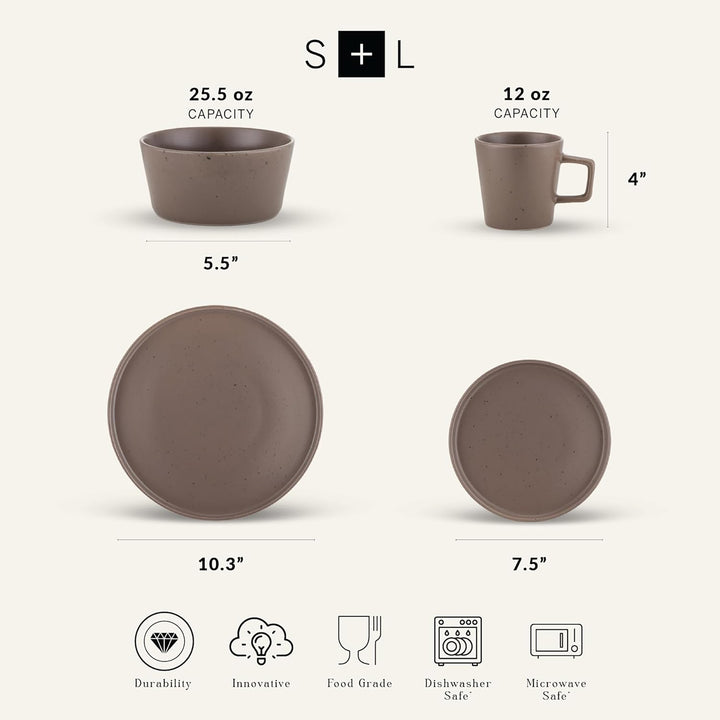 Stone Lain Celina Stoneware 16 Piece Dinnerware Set, Service for 4, Brown Matte