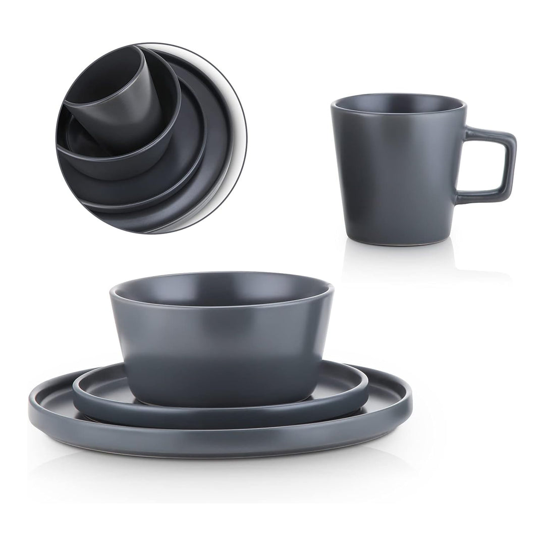 Stone Lain Celina Stoneware 16 Piece Dinnerware Set, Service for 4, Gray Matte