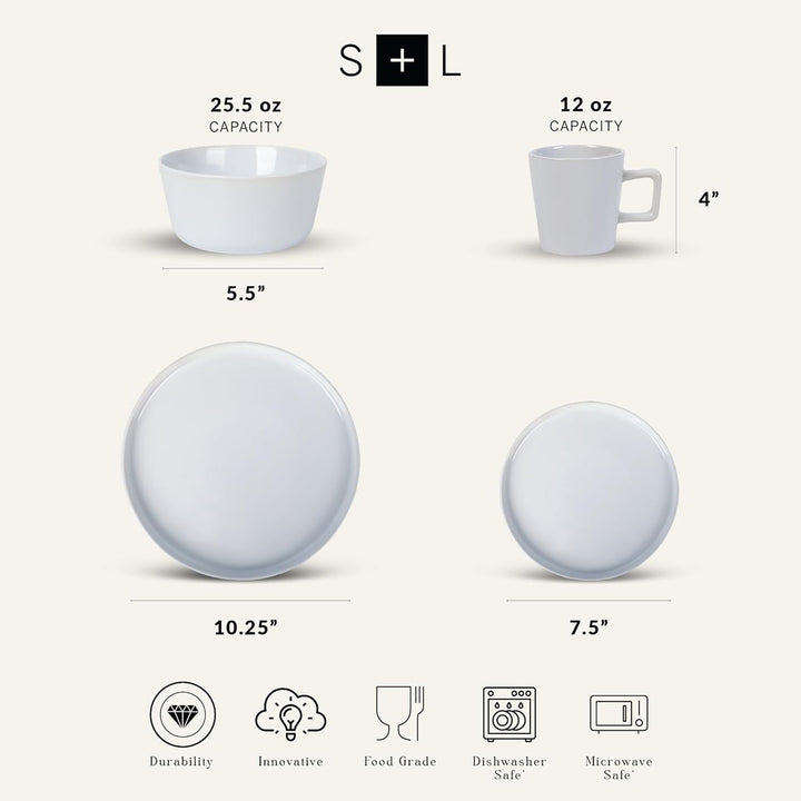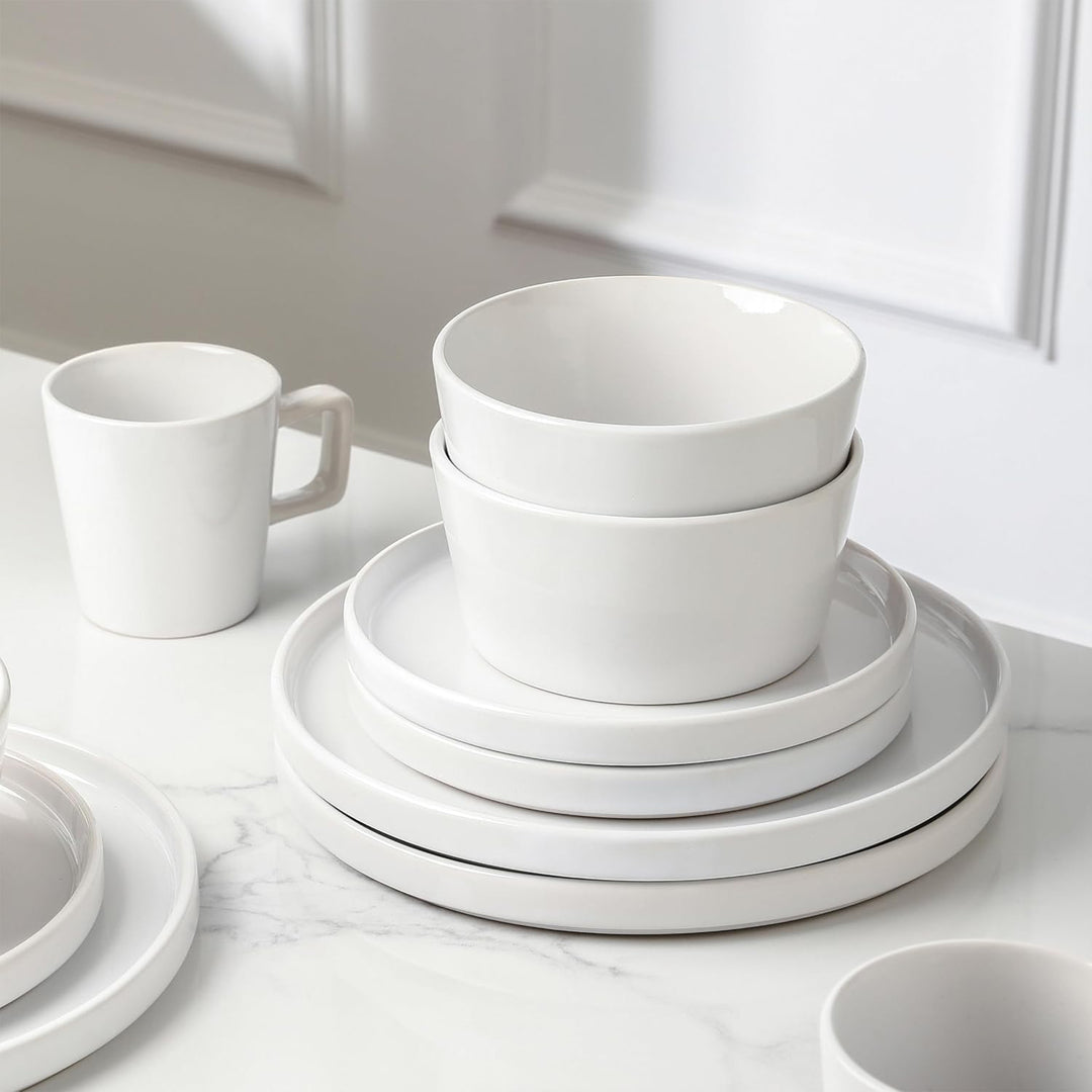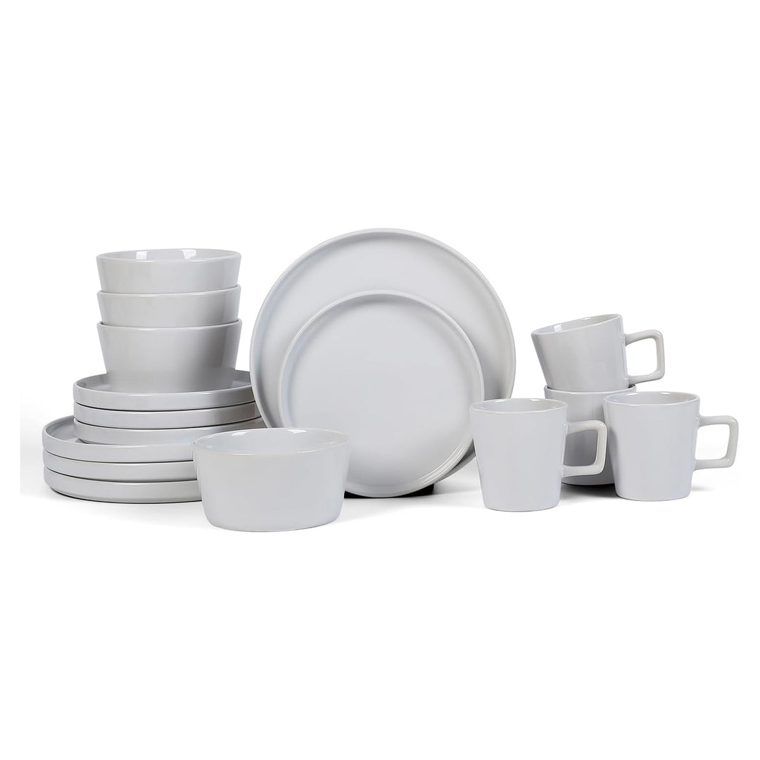 Stone Lain Celina Stoneware 16 Piece Dinnerware Set, Service for 4, White Glossy