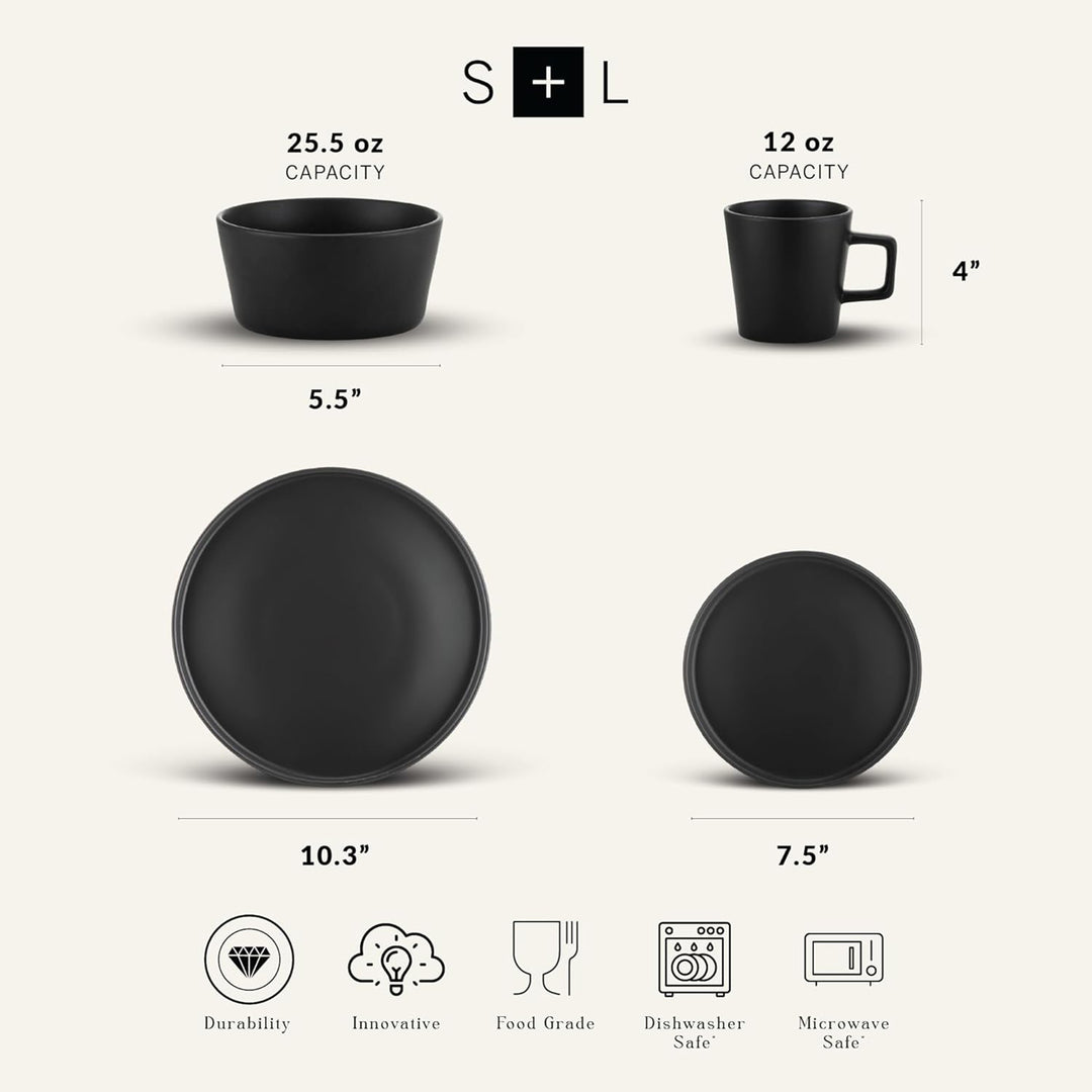 Stone Lain Celina Stoneware 32 Piece Dinnerware Set, Service for 8, Black Matte