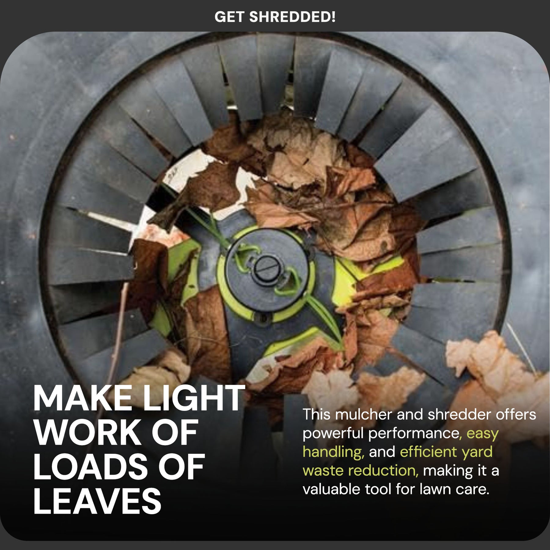 • Versatile Mulcher: Effortlessly turn yard waste into nutrient-rich mulch with the powerful Sun Joe 15-Amp Bladeless Electric Leaf Mulcher + Shredder