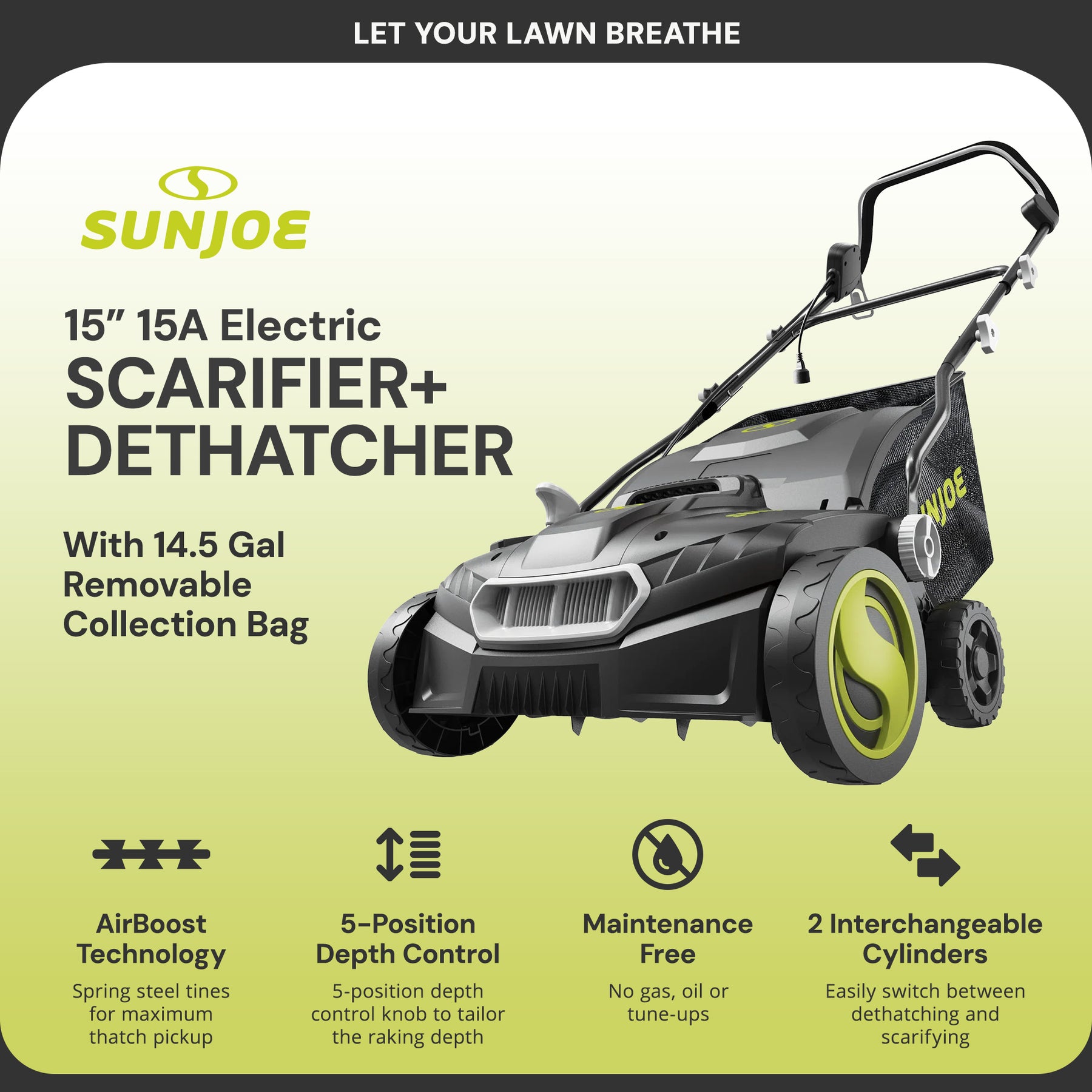 Sun Joe 15" Battery Powered Dethatcher Scarifier with 13.2 Gallon Bag (Open Box)