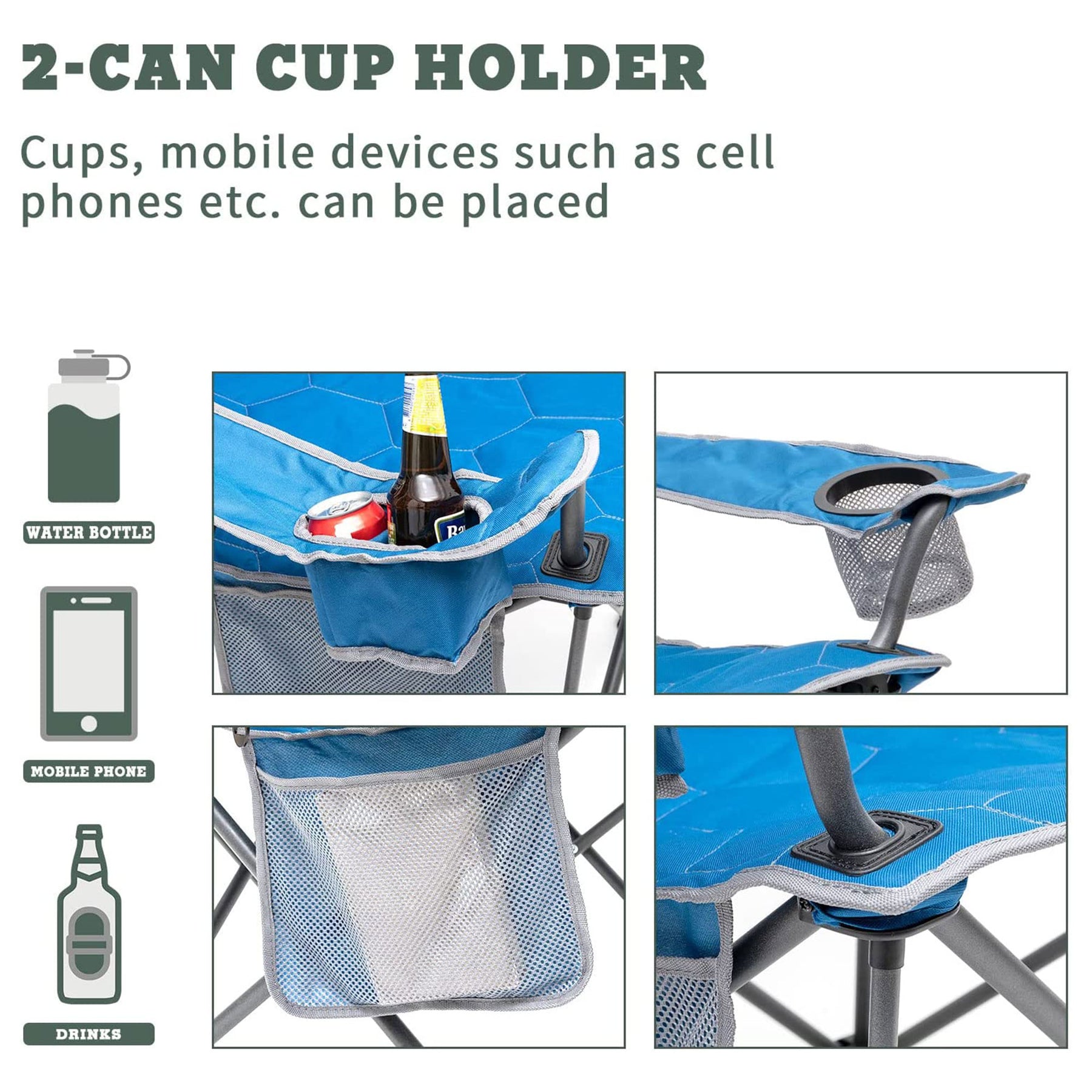 SunnyFeel Oversized Heavy Duty Folding & Padded Camping Chair, Blue (Open Box)