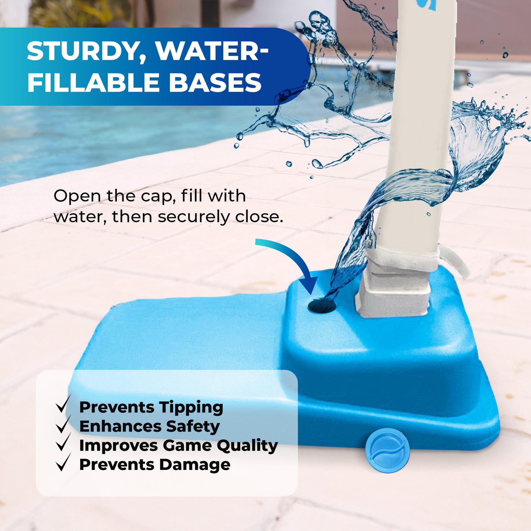 • Complete game set requires little time for setup in 15 minutes or less, you can easily transform your pool into a volleyball court