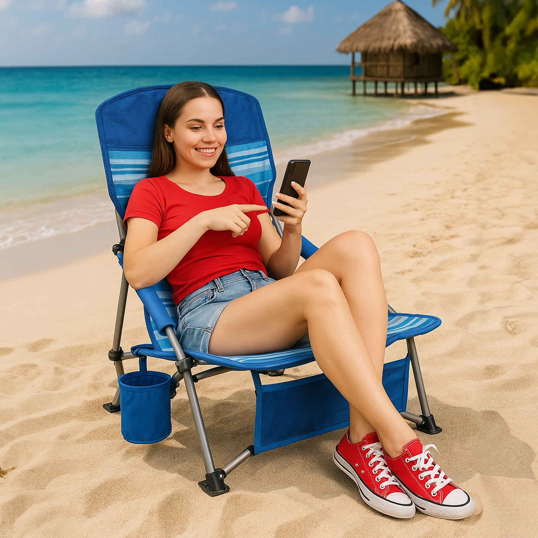 - Cup holder keeps drinks accessible and steady during outdoor lounging
