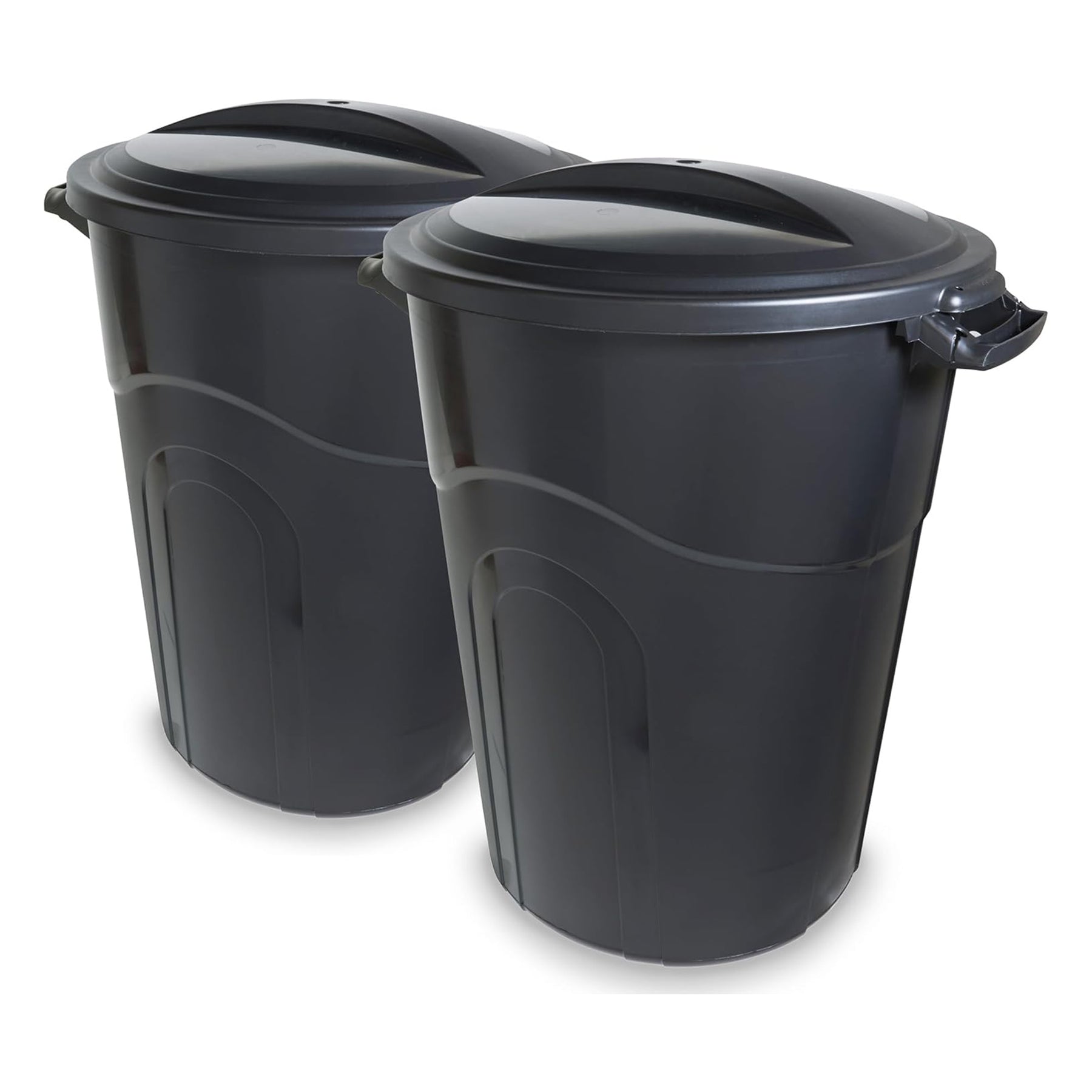 United Solutions 2 Pack 32 Gal Outdoor Trash Bins, Handles, Black (Open Box)