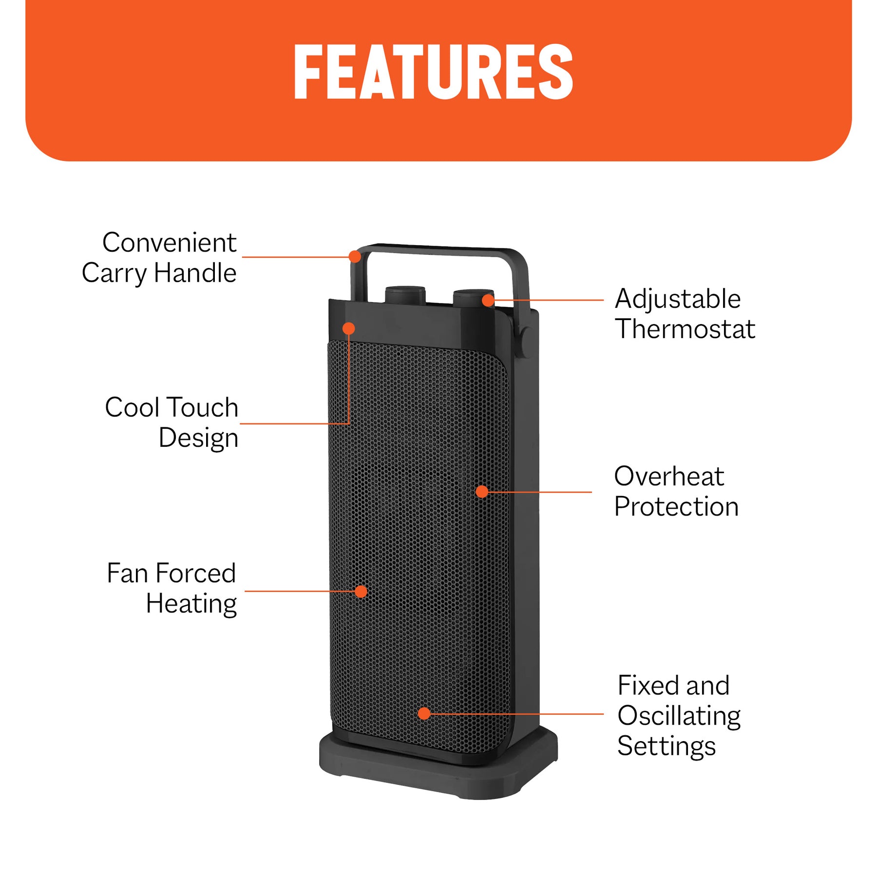 • Compact ceramic heater provides fast and efficient warmth in any room