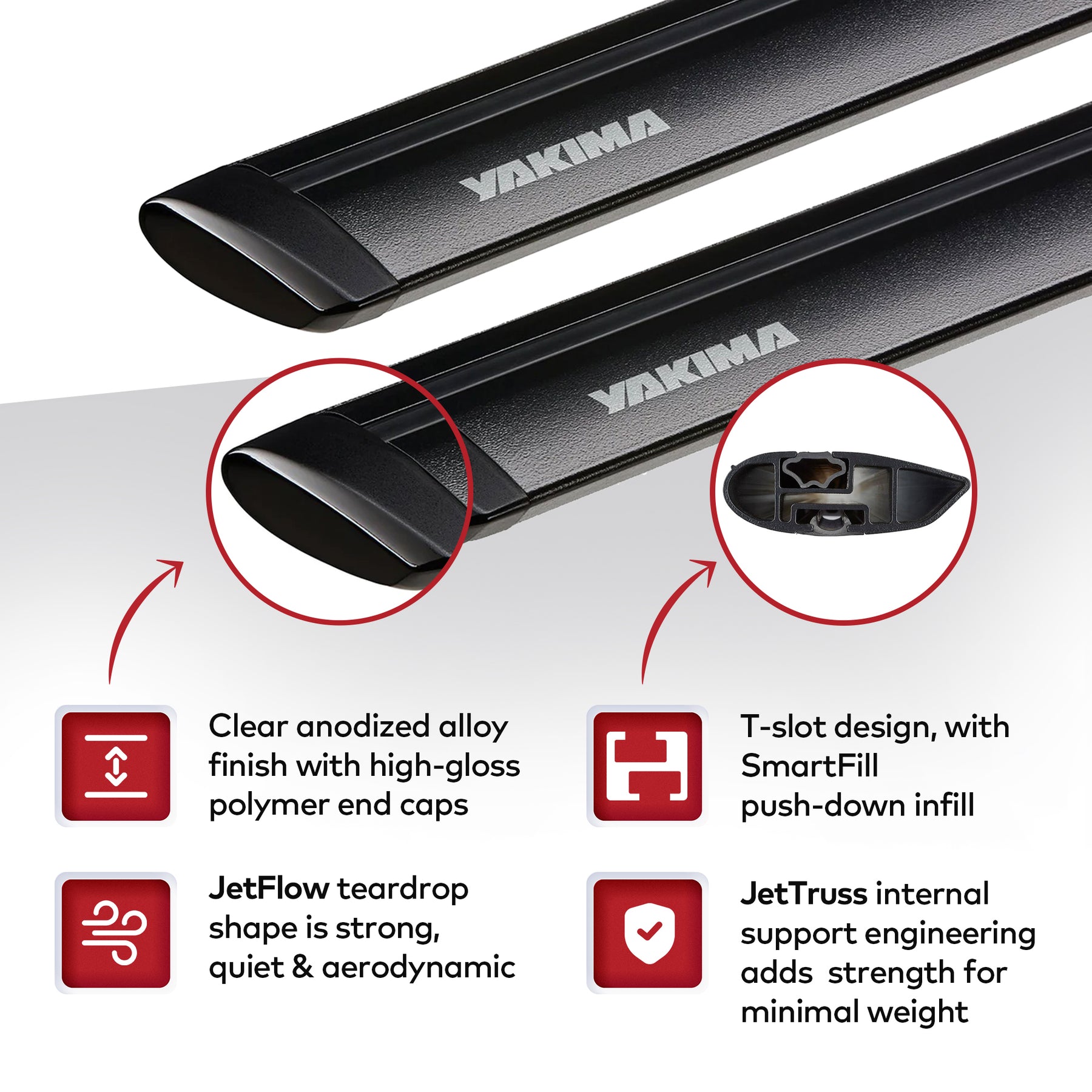 • Aerodynamic crossbar designed with wind tunnel tested for peak performance that minimizes drag, ensuring a quiet, efficient ride while maximizing fuel efficiency
