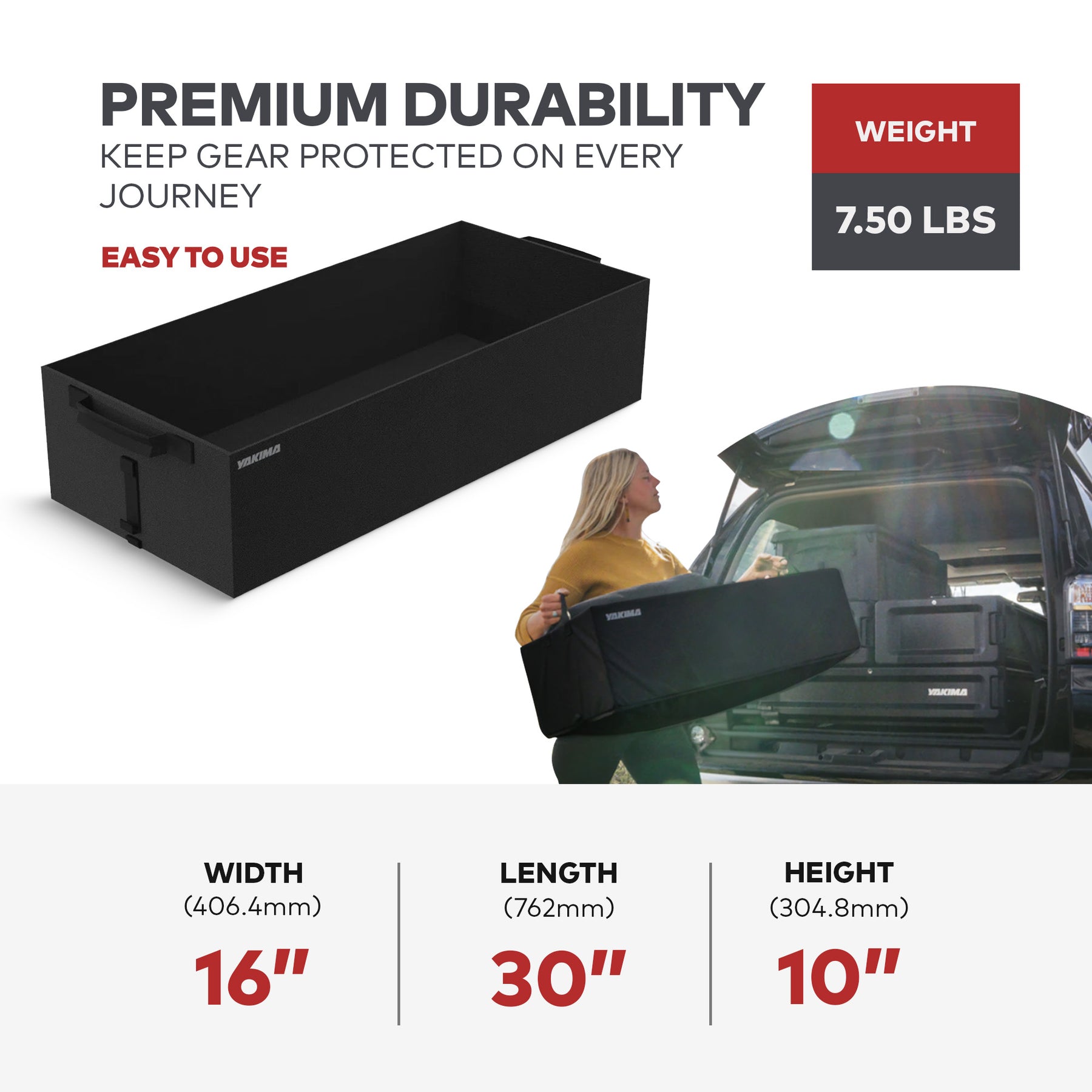 • Dimensions (L x W x H): 30 x 16 x 10 inches