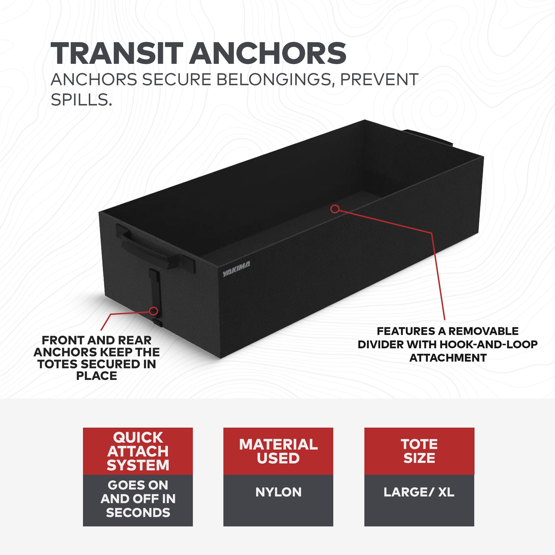 • Front and rear anchors keep your belongings securely in place during transit, eliminating worries about shifting or spills