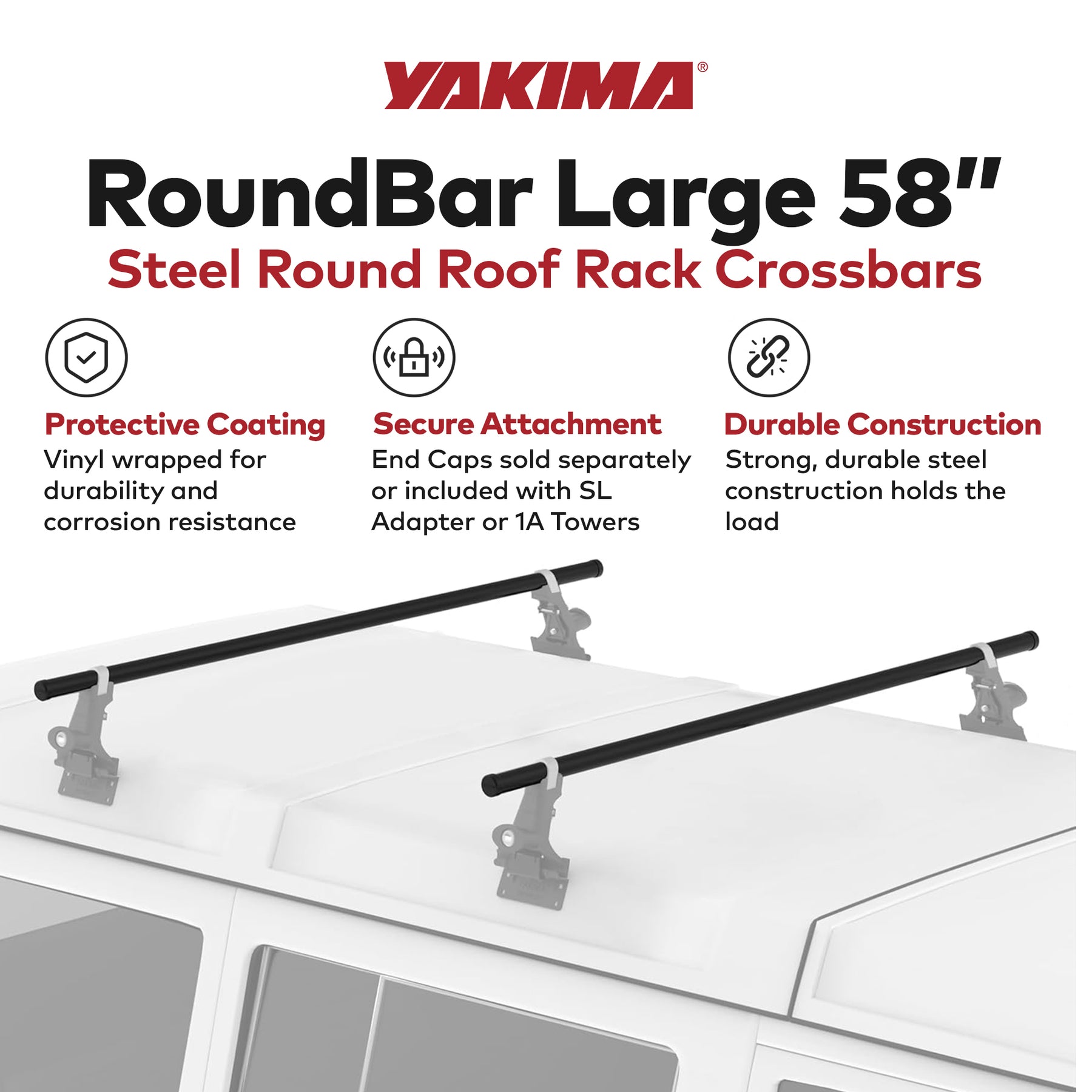 Yakima RoundBar Medium 58” Steel Roof Rack System Crossbars, Set of 2 (Open Box)