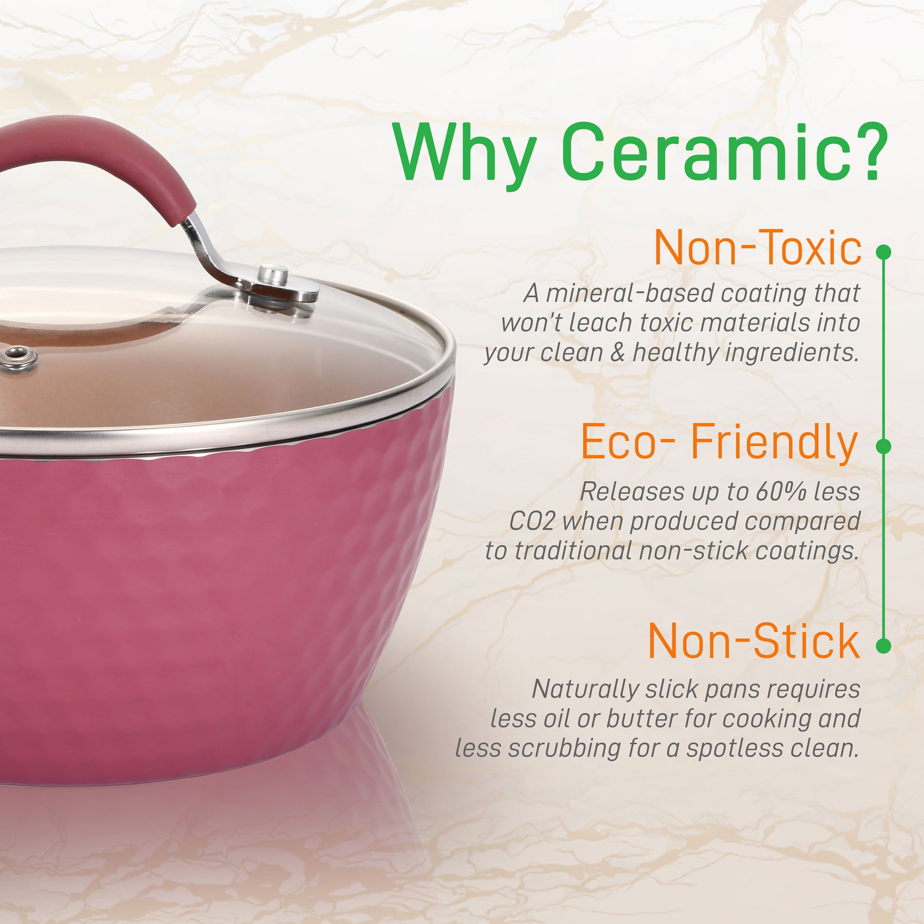 11 Piece Nonstick Elegant Diamond Pattern Kitchen Cookware Set, Pink (Open Box)