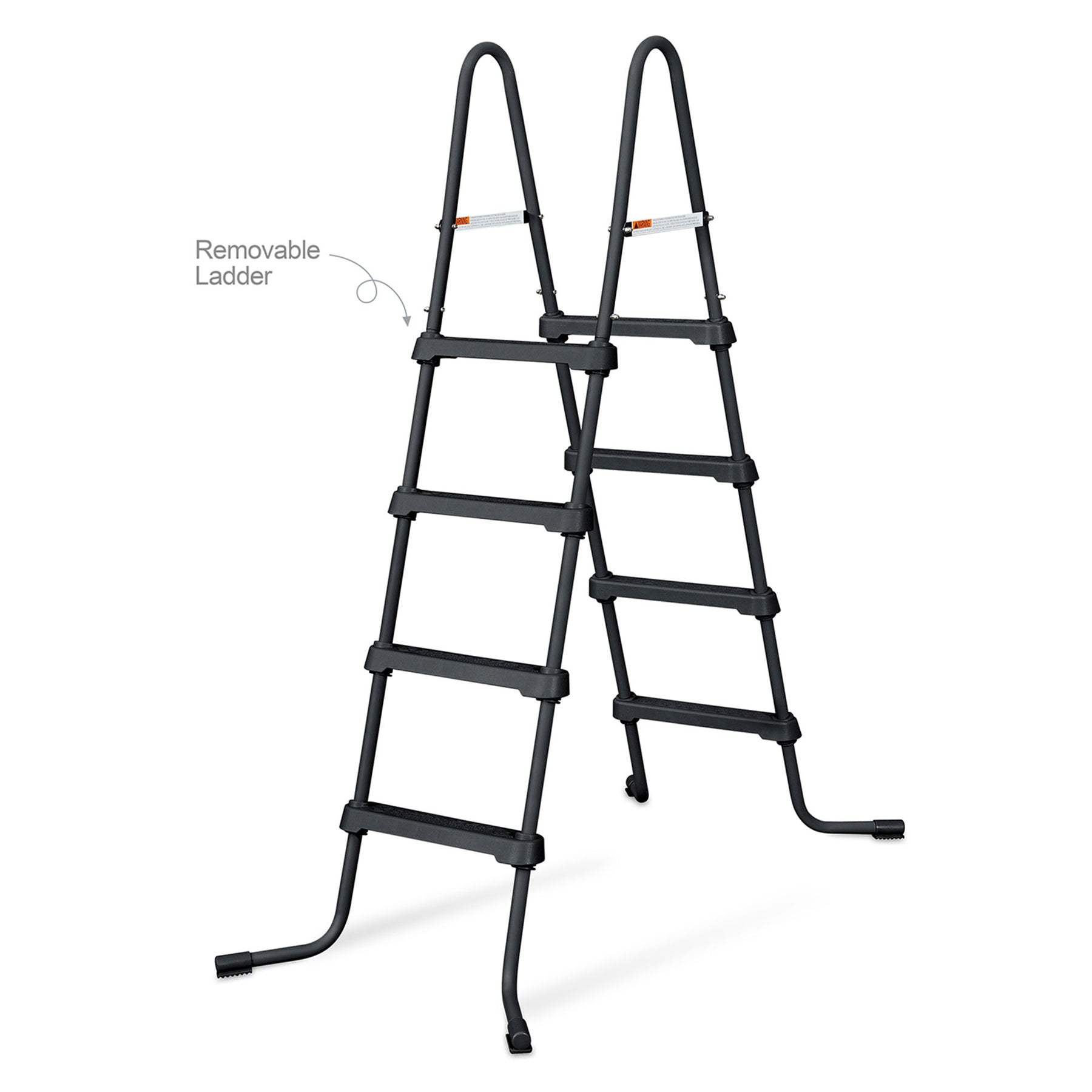 • Includes SFX1500 SkimmerPlus filter pump (110-120V with GFCI), Type C filter cartridge, SureStep ladder, pool cover, repair patch, ground cloth, and deluxe maintenance kit