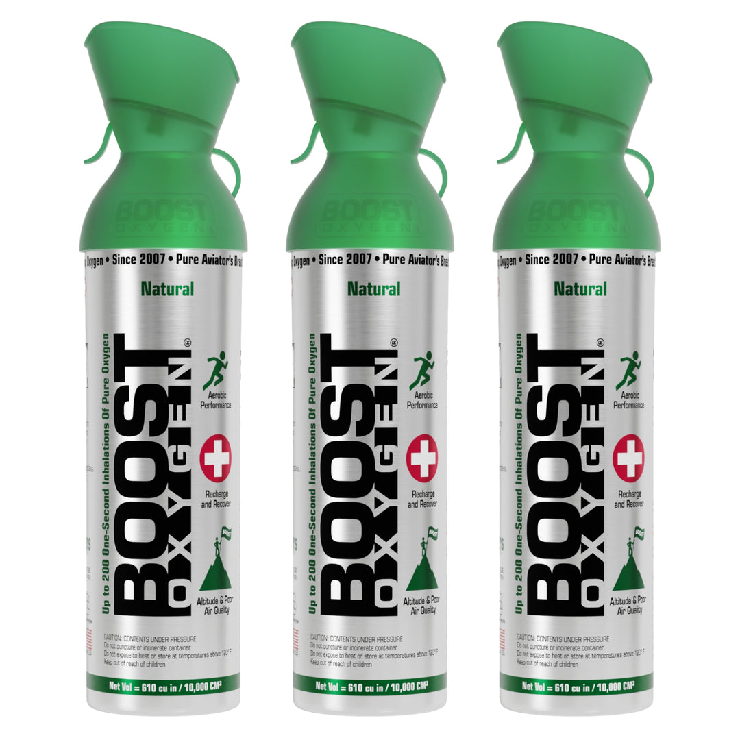 - 3 packs of Boost Oxygen come with portable oxygen canisters for on-the-go lifestyles that are completely recyclable