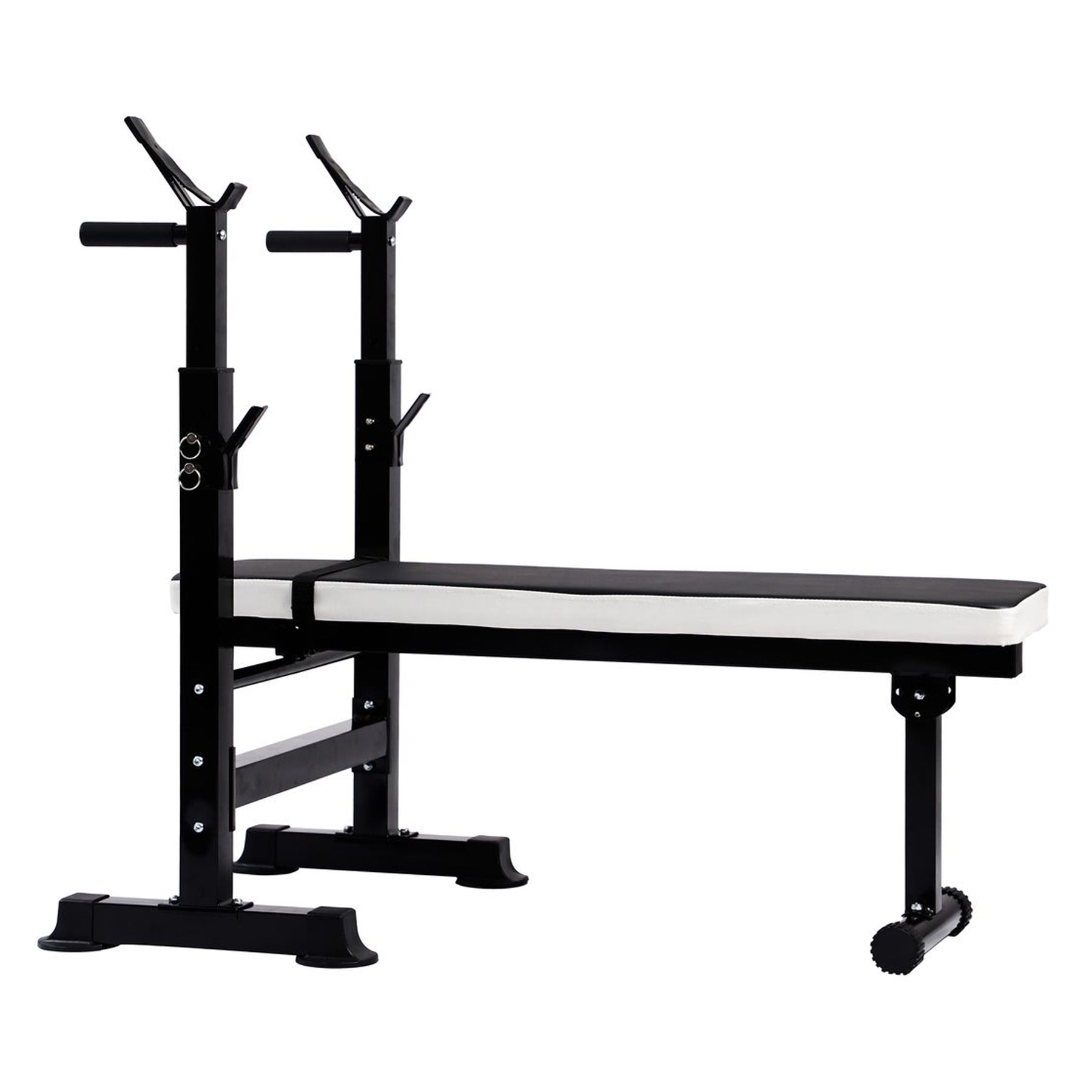 • Padded bench for comfort can be adjusted between flat and incline positions to accommodate different exercises