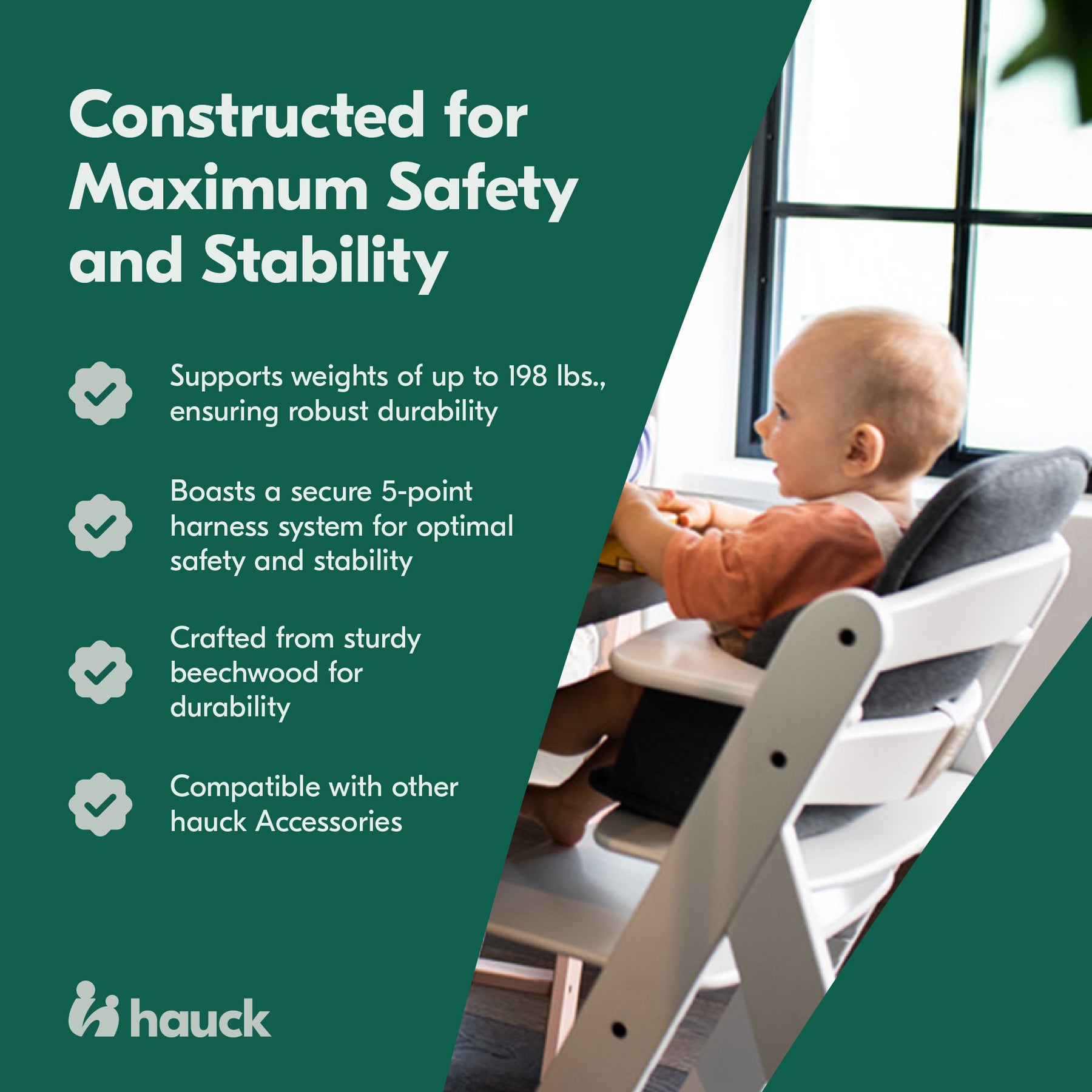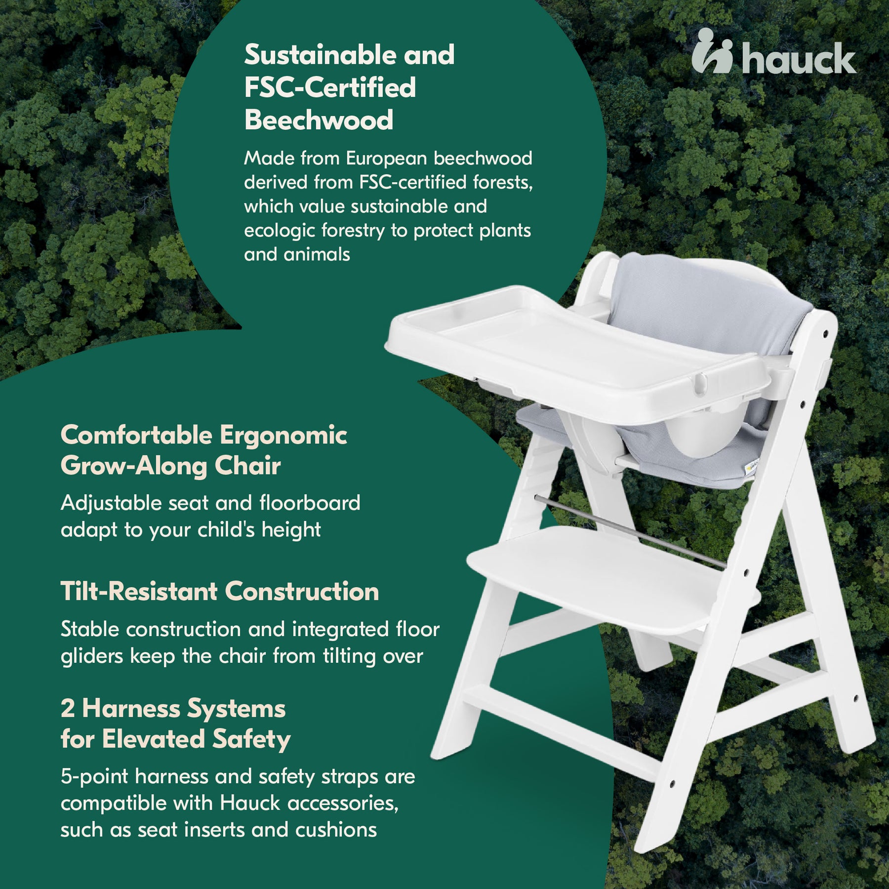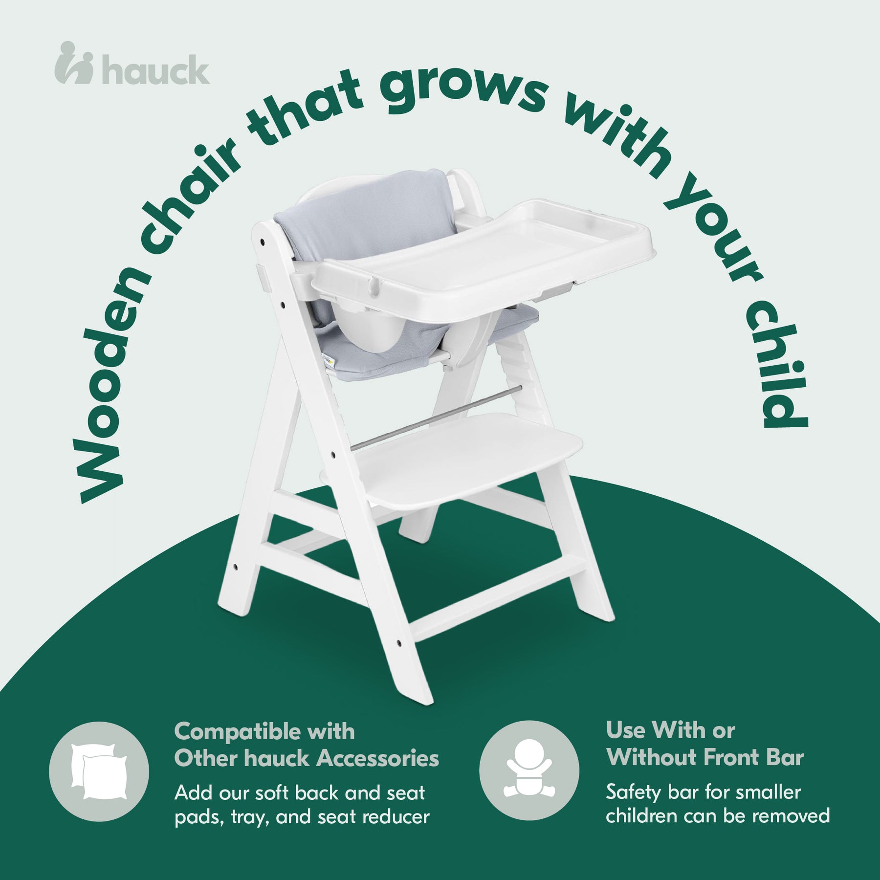 • Grow-along Alpha + wooden high chair for infants and toddlers; Suitable for ages 6 months and above with a maximum load of 198 pounds