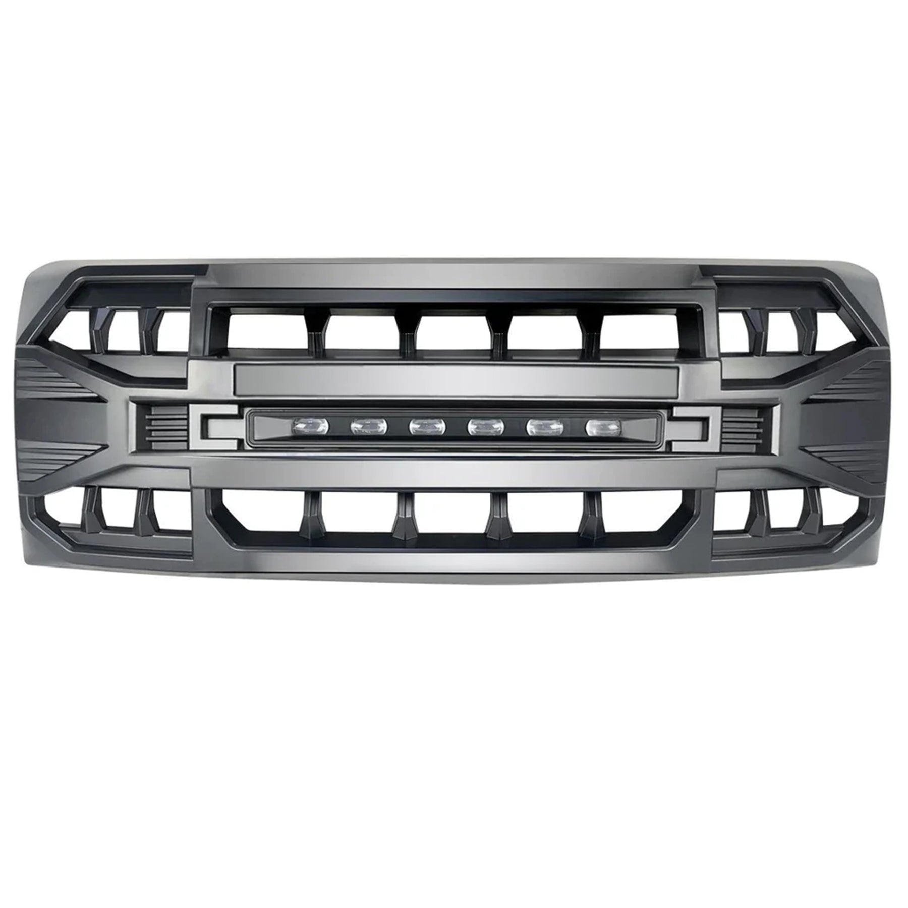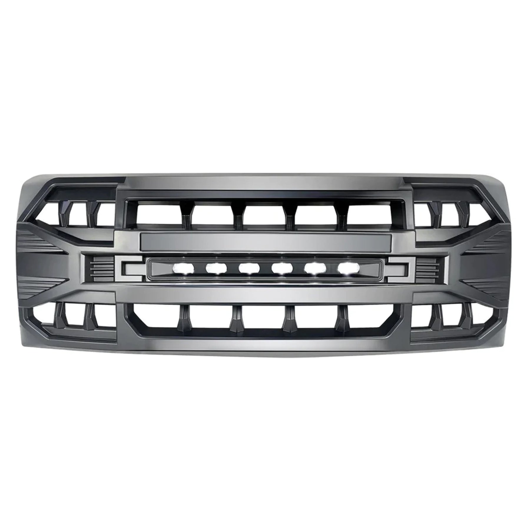 • Grille with LED light bar for added off-roading illumination; Looks great with a stark, menacing, innovative design
