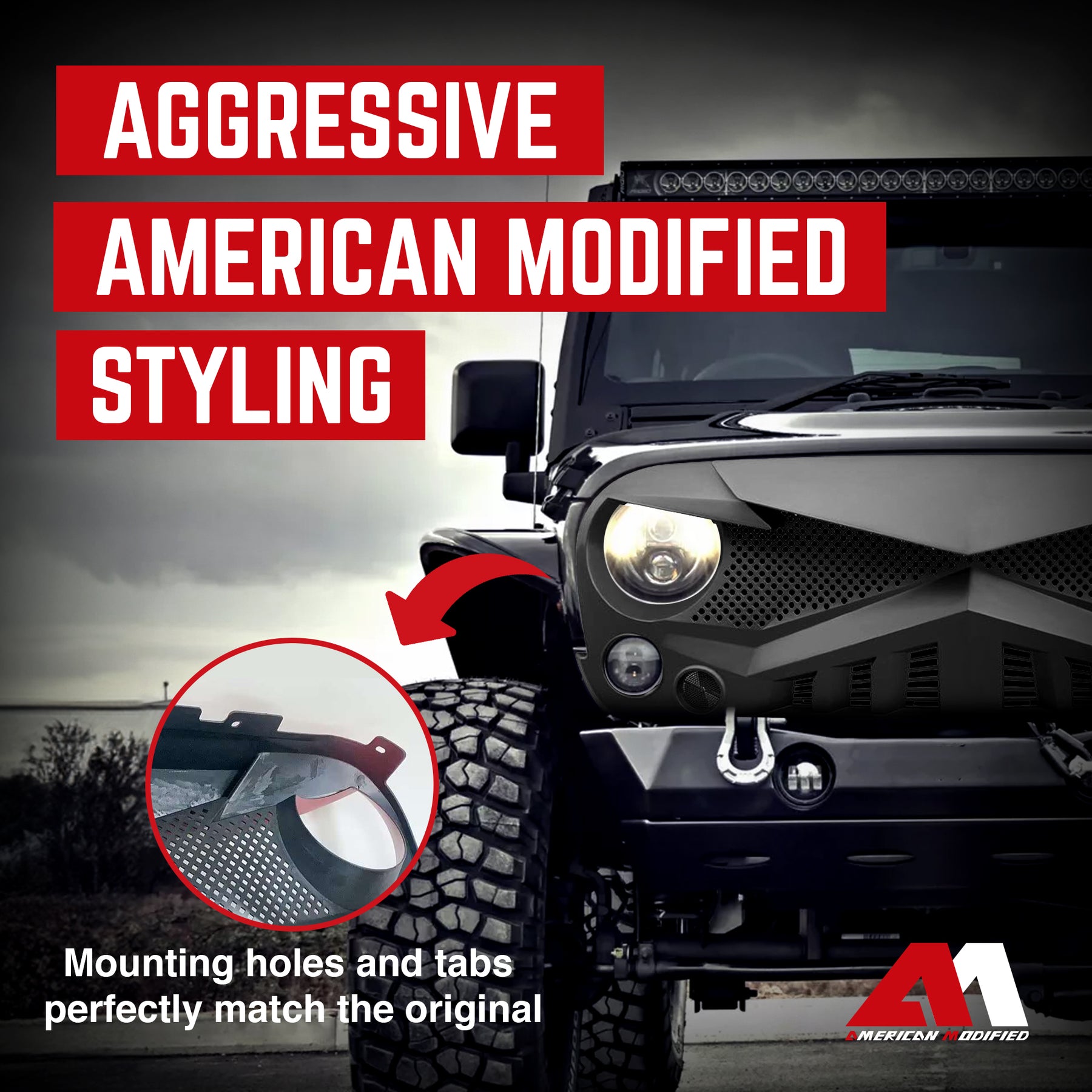 American Modified Front Hawke Grille for 07-18 Jeep Models, Matte Black (Used)