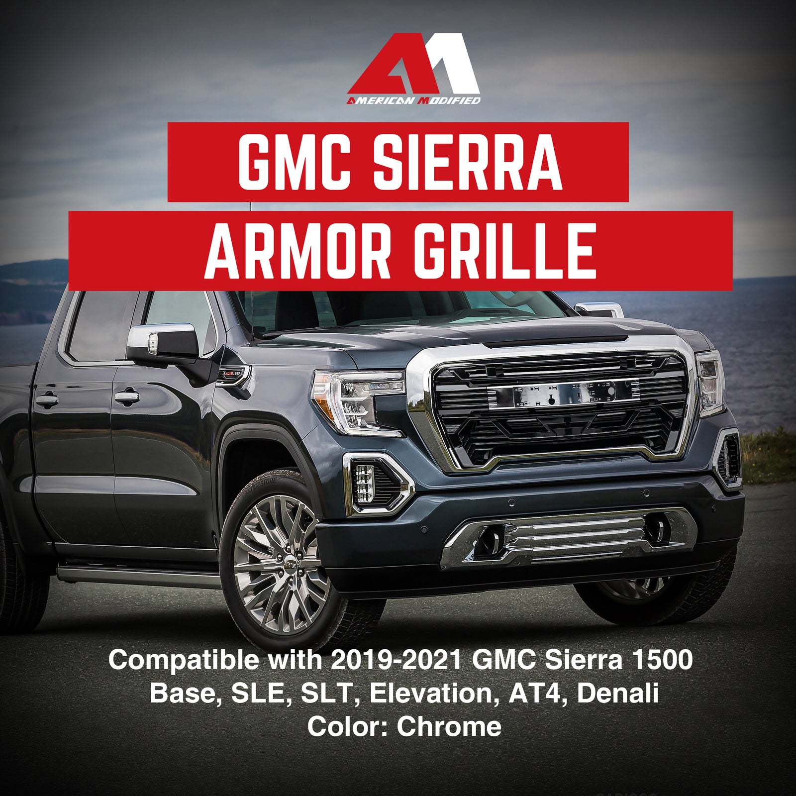 AMERICAN MODIFIED Grille w/Emblem Base for 2019-2021 GMC Sierra 1500, Chrome