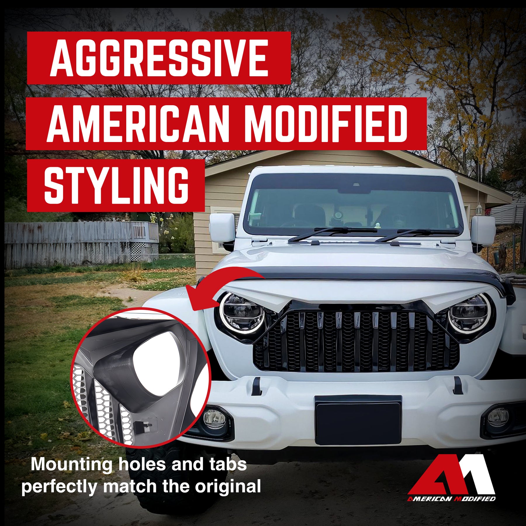 AMERICAN MODIFIED Front Mesh Grille for 2018+ Jeep Wrangler JL & Gladiator JT
