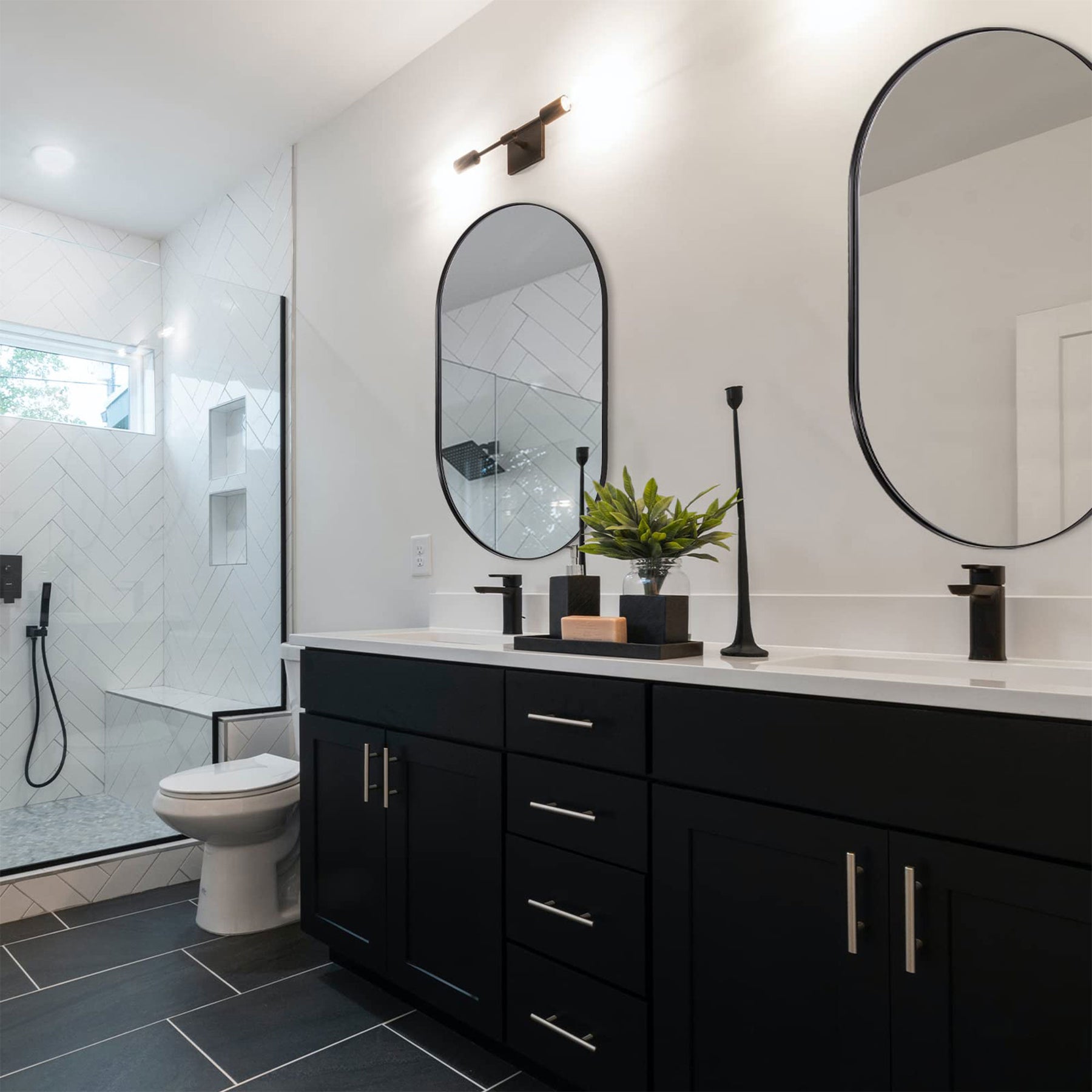 • Modern hanging mirror rated for use in bathroom, fireplace, entryway, living room, and other high-moisture areas
