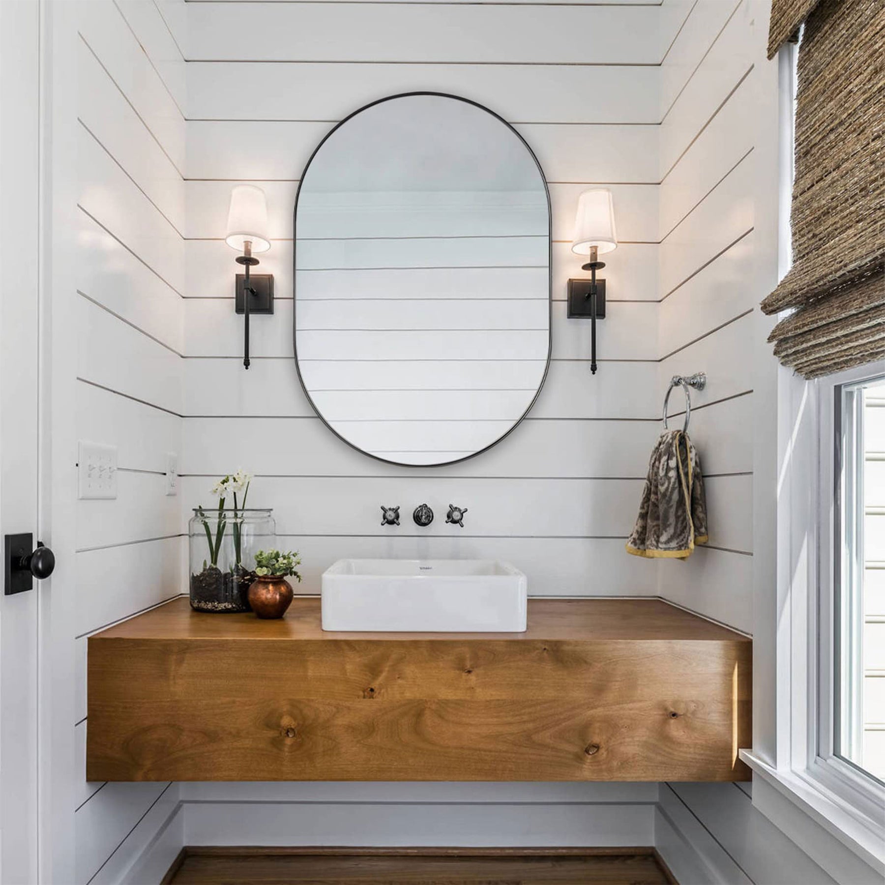 ANDY STAR 24 x 36 In Oval Hanging Metal Frame Wall Mirror, Matte Black(Open Box)