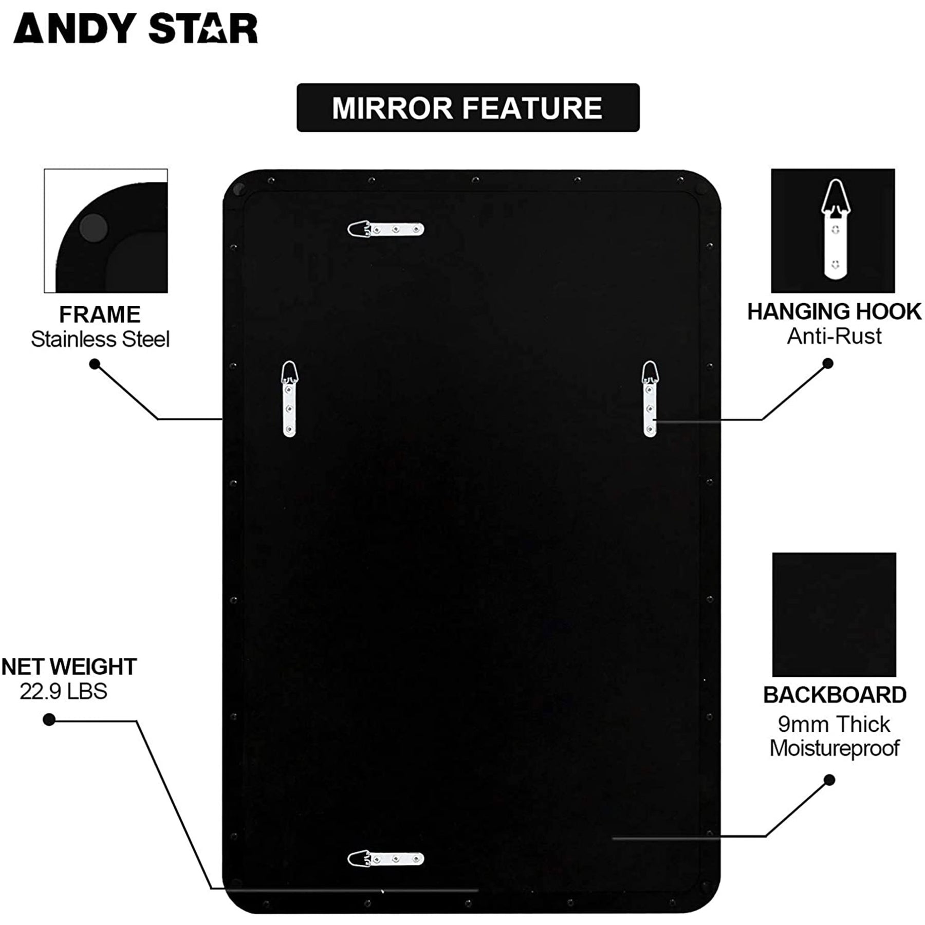 • Modern hanging mirror rated for use in bathroom, fireplace, entryway, living room, and other high-moisture areas