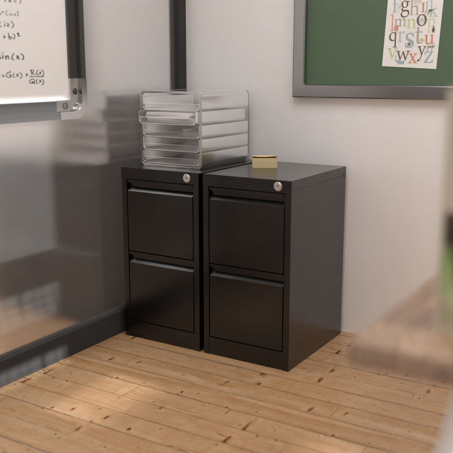 • Organize and protect important documents, work files, and more with this spacious 2-drawer filing cabinet