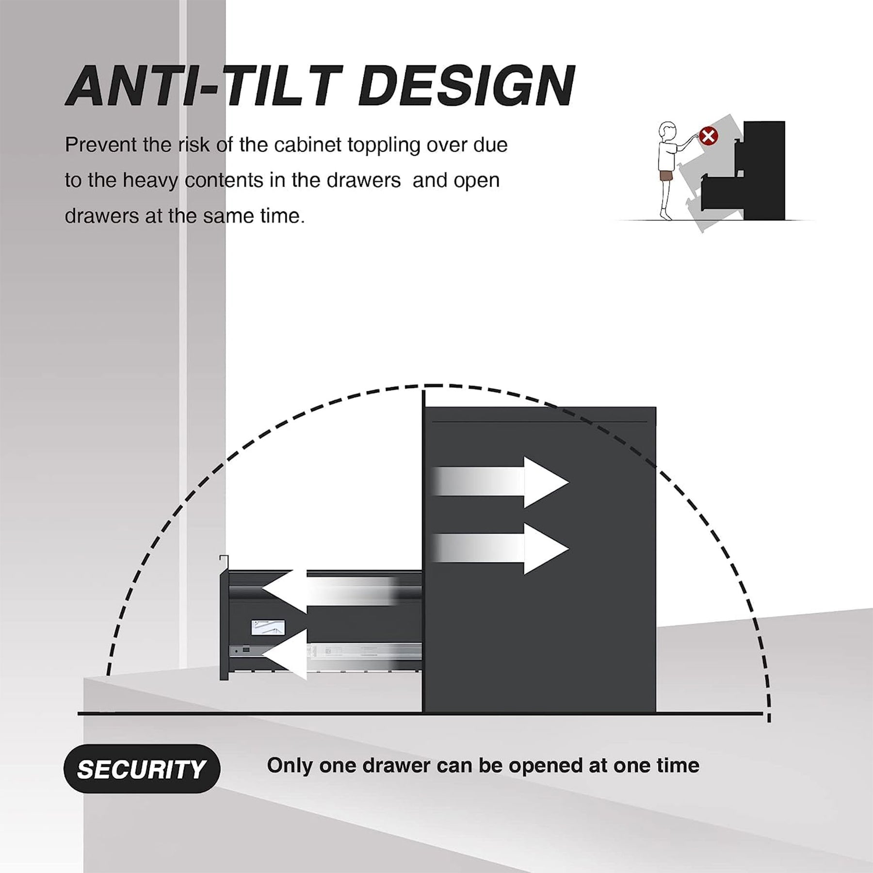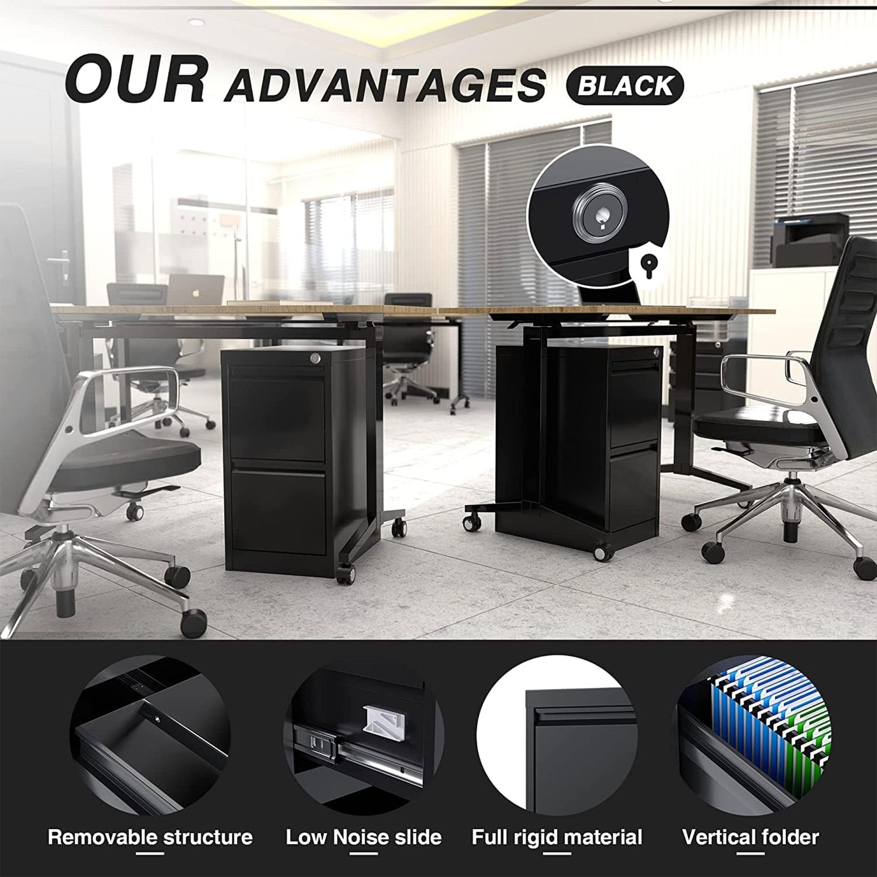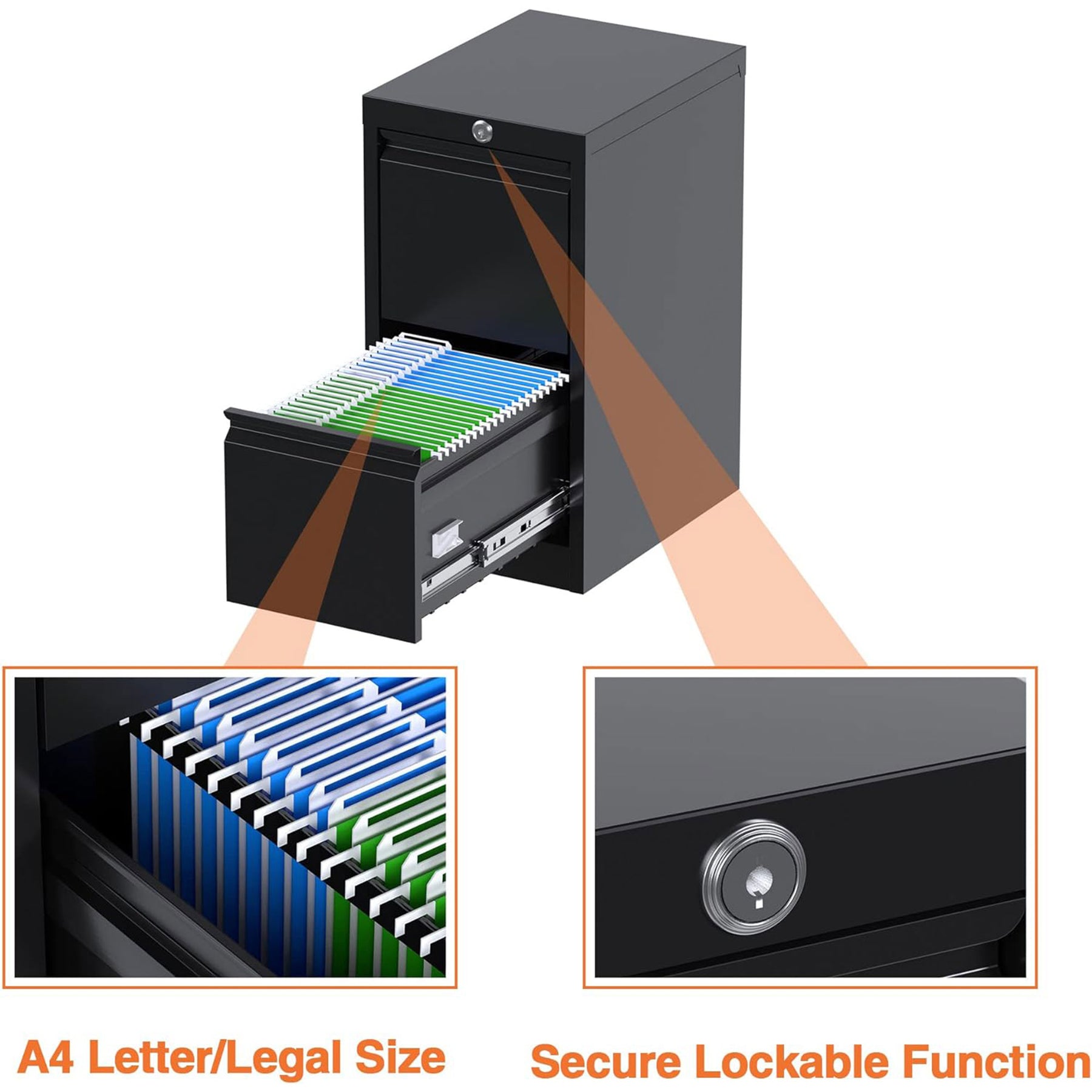 AOBABO 2 Drawer Vertical Metal File Cabinet with Lock, Black (Open Box)
