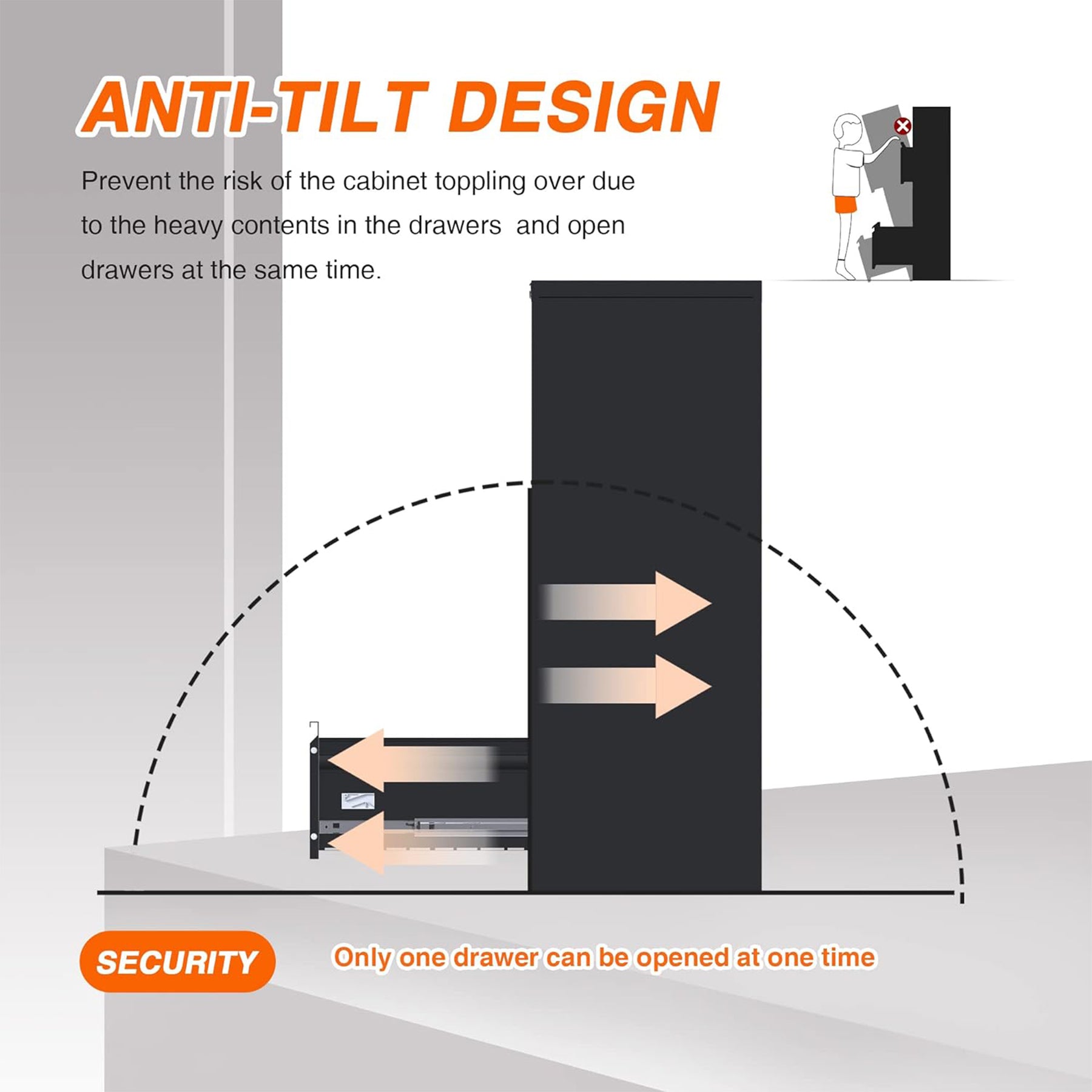 AOBABO 4 Drawer Vertical Metal File Cabinet with Lock for Home and Office, Black