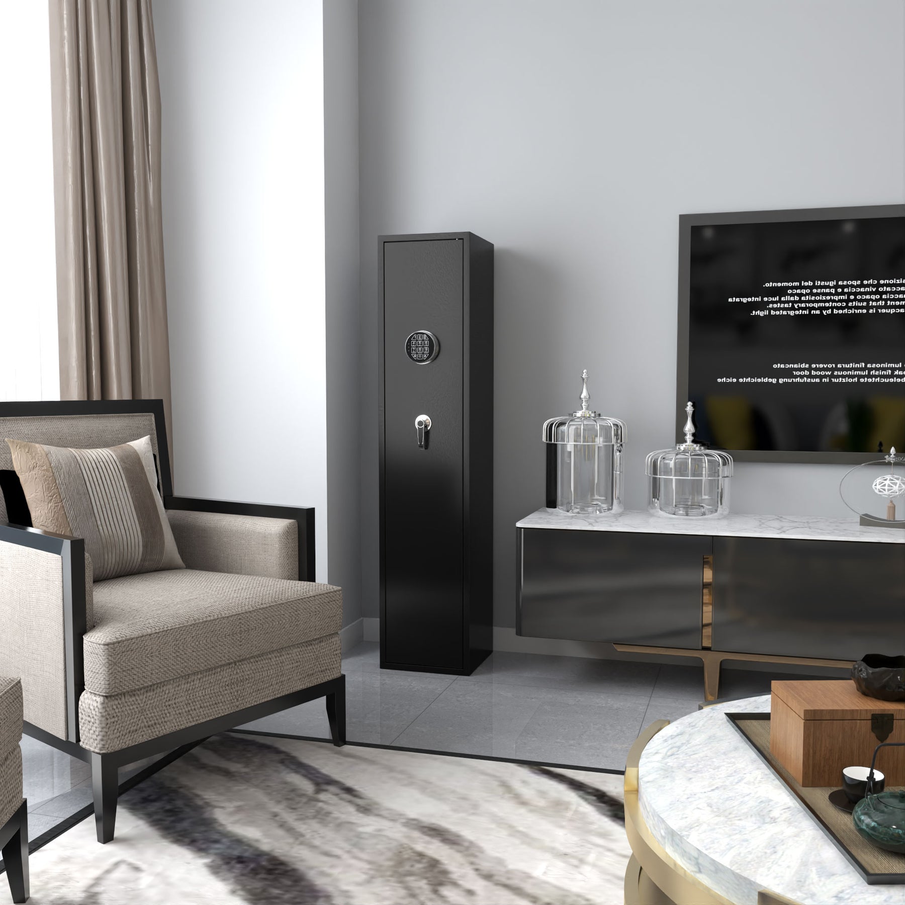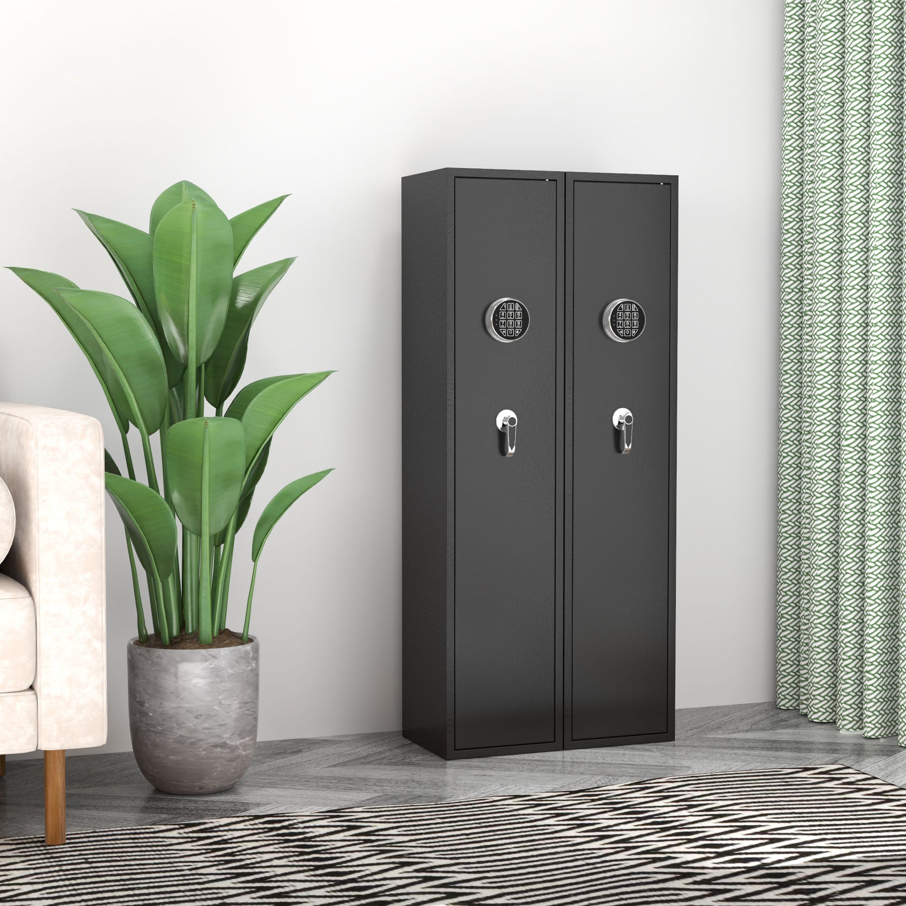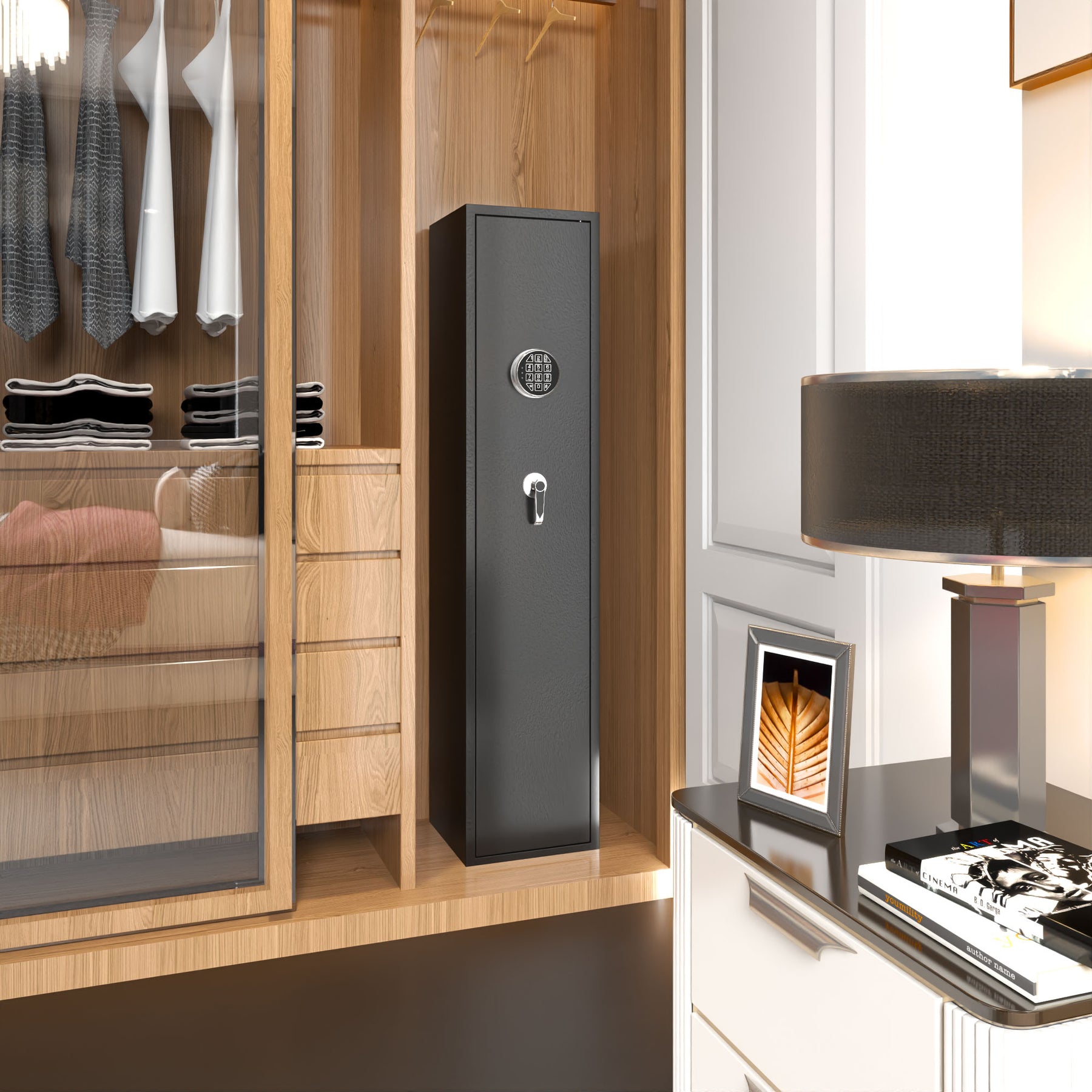 • Large and deep gun cabinet can store up to 5 rifles and 2 pistols; It will fit your firearms if you have optics/scopes attached or a rail mount on top