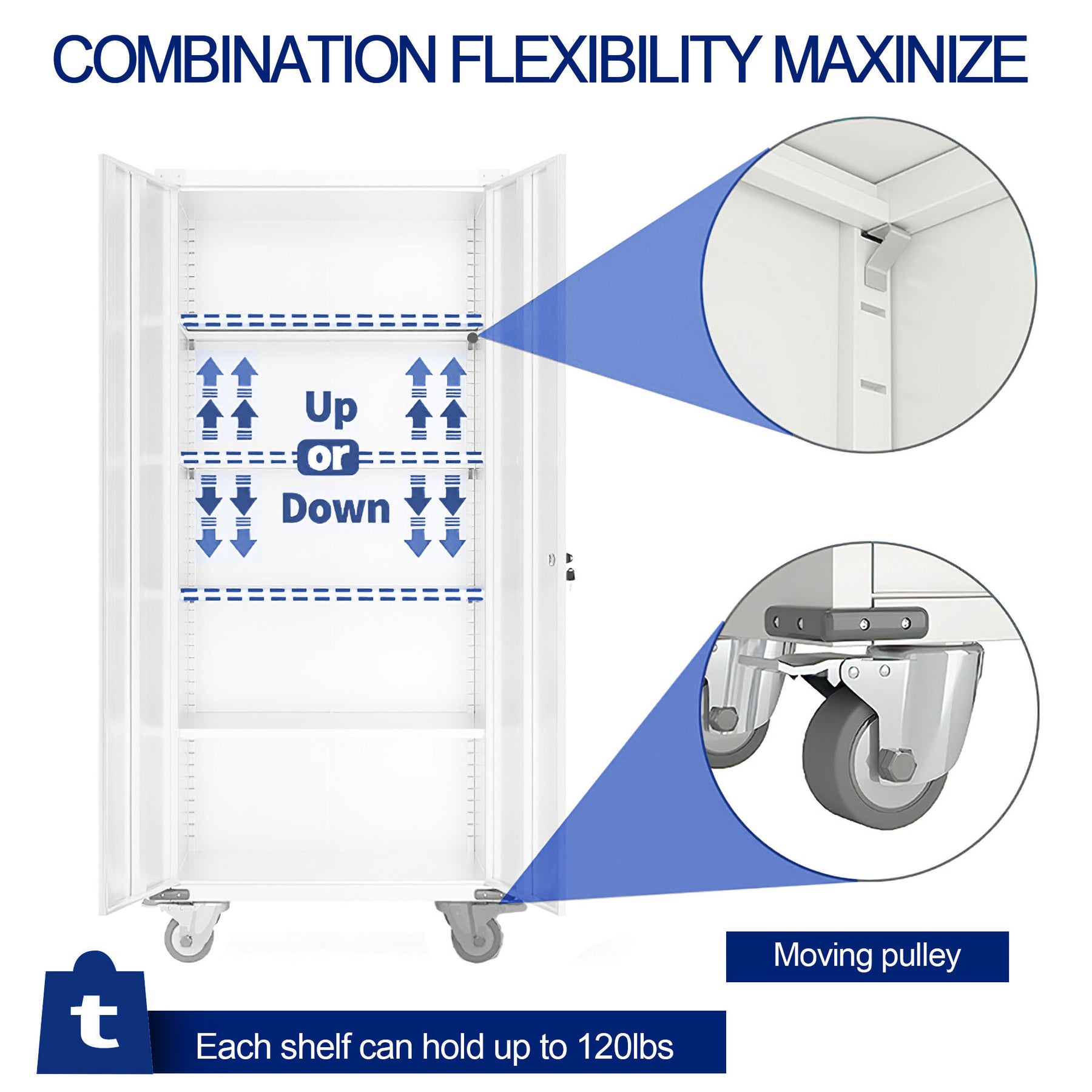• Equipped with universal rubber wheels and 4 lockable silent casters, the cabinet is effortlessly movable without causing surface scratches