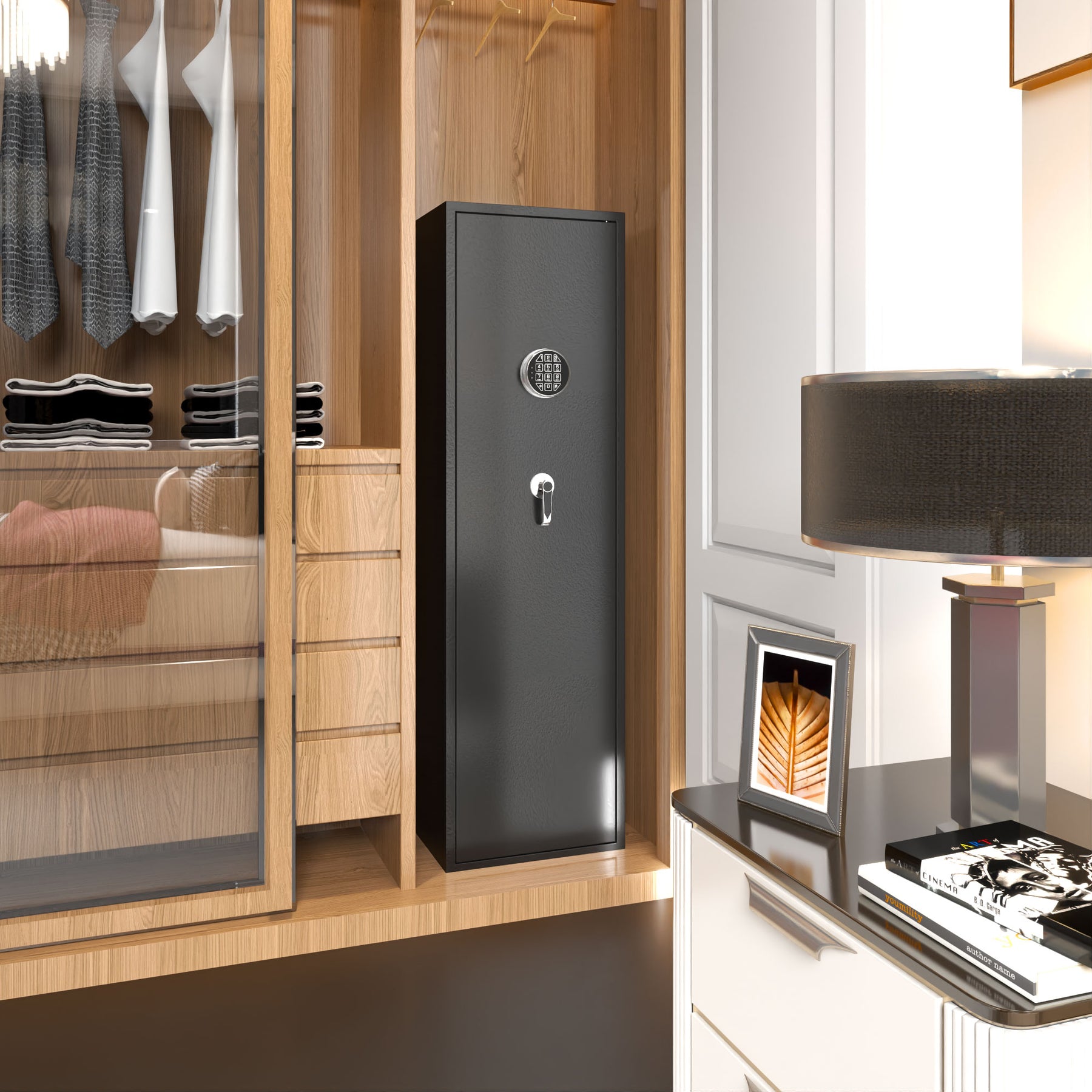 • Large and deep gun cabinet can store up to 8 rifles and 2 pistols; It will fit your firearms if you have optics/scopes attached or a rail mount on top