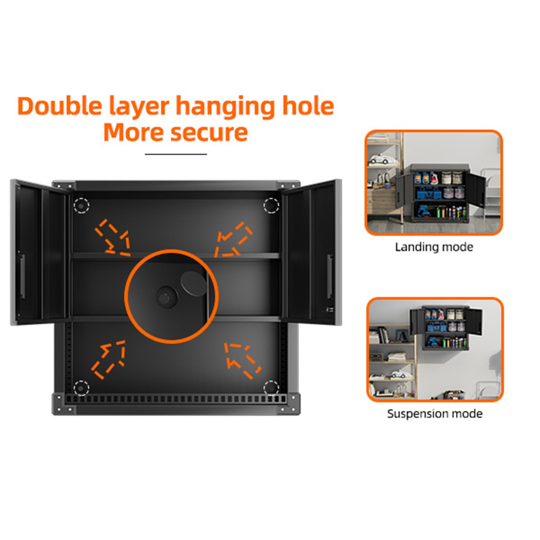 • Wall-mounted cabinet with locking door ensures your tools and equipment stay safe and protected from unauthorized access
