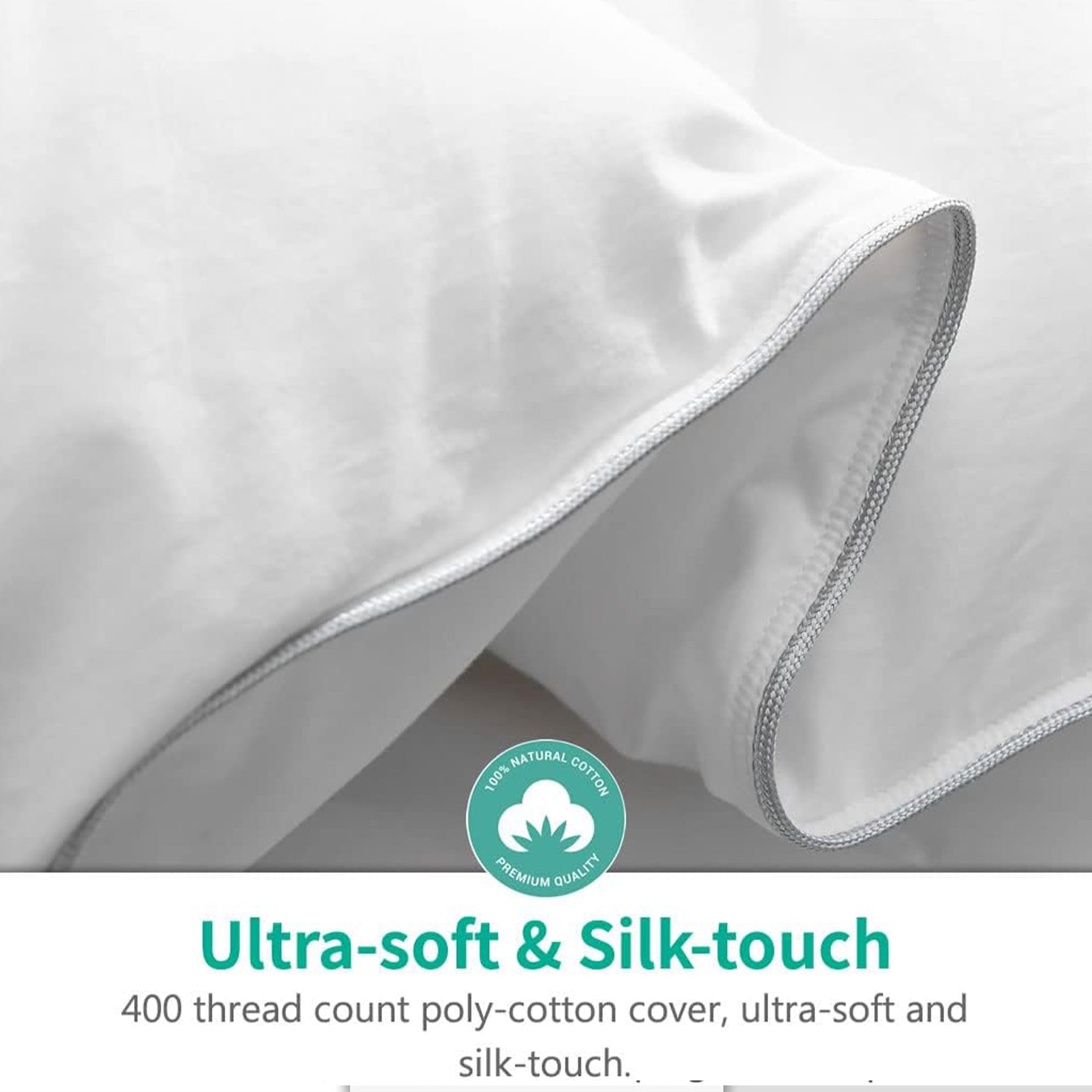 • Revel in the deluxe softness and comfort of the 400 thread count poly-cotton blend fabric shell, offering breathability, and a plush feel