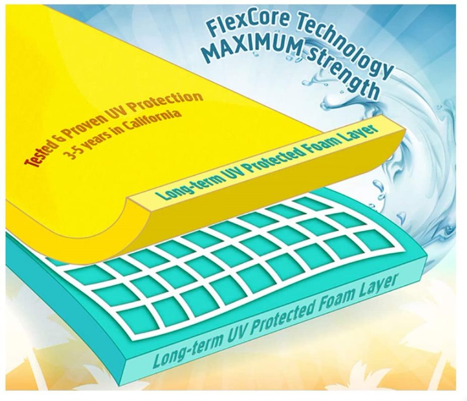 • FlexCore technology is easy to transport when rolled up, flexible to lay flat, lightweight, and does not absorb water; Includes storage bag
