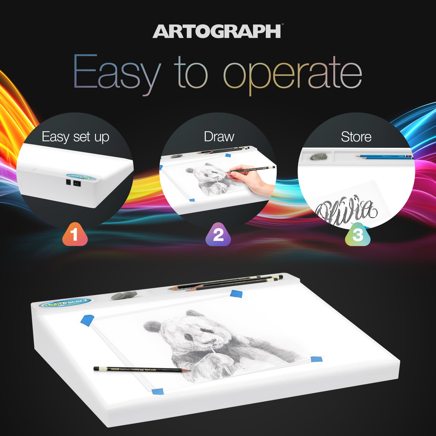 • Large 12 x 18-inch illuminated work surface provides ample room for complex tracing, drawing, and art projects