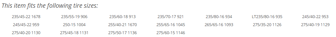 • Tire size compatibility: