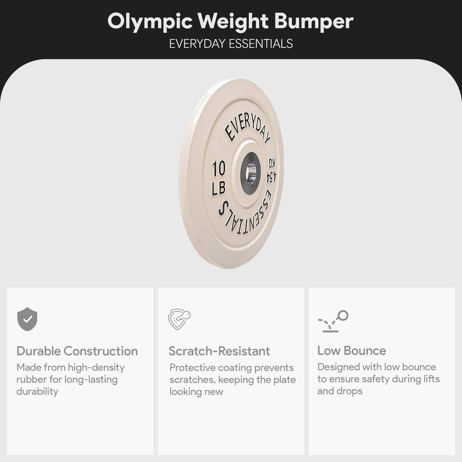 • Solid, Olympic-style bumper plate provides 10 pounds of weight for your Olympic barbell, excellent for numerous exercises