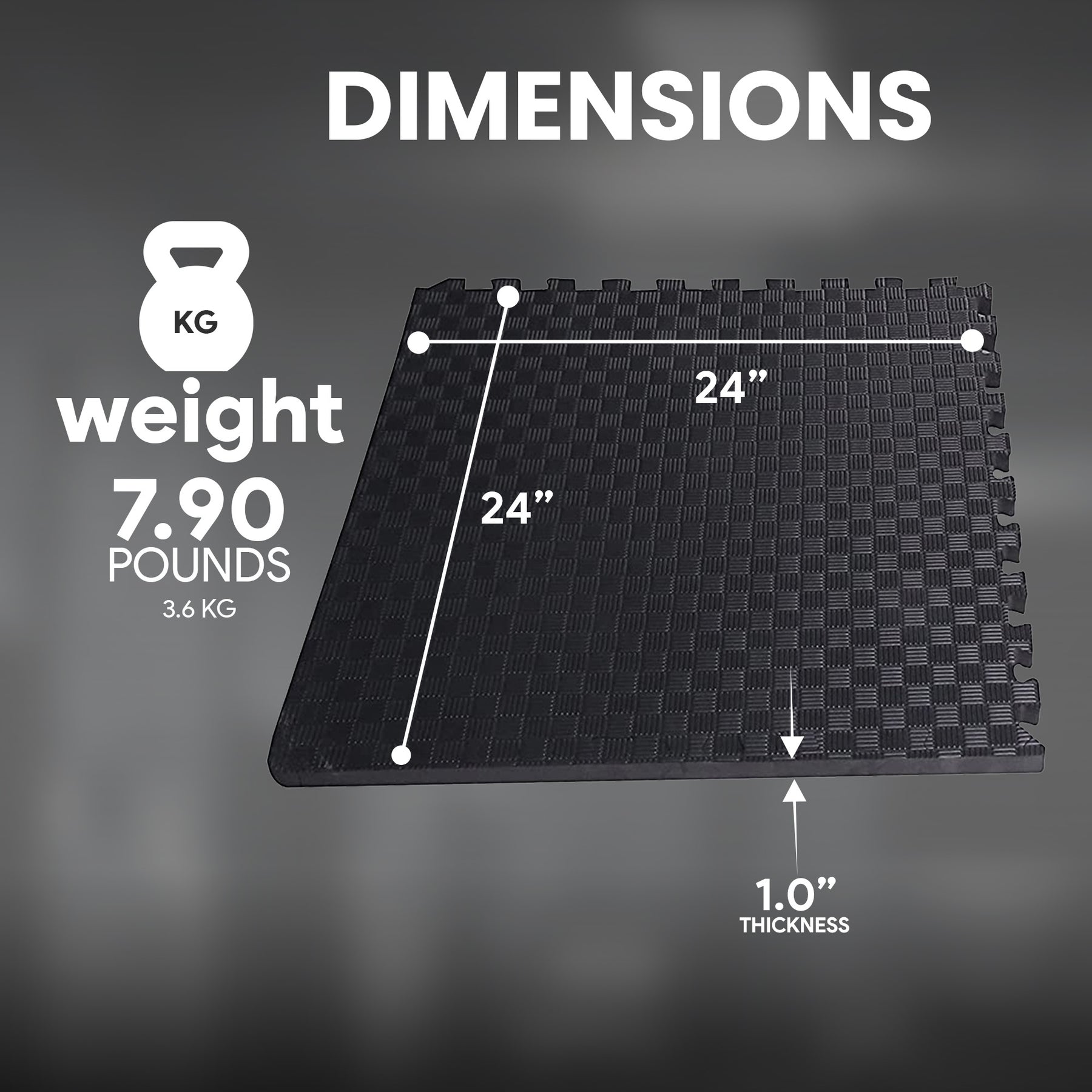 • Double-sided dense EVA foam mat provides your home gym with a soft, comfortable floor for high-intensity workouts