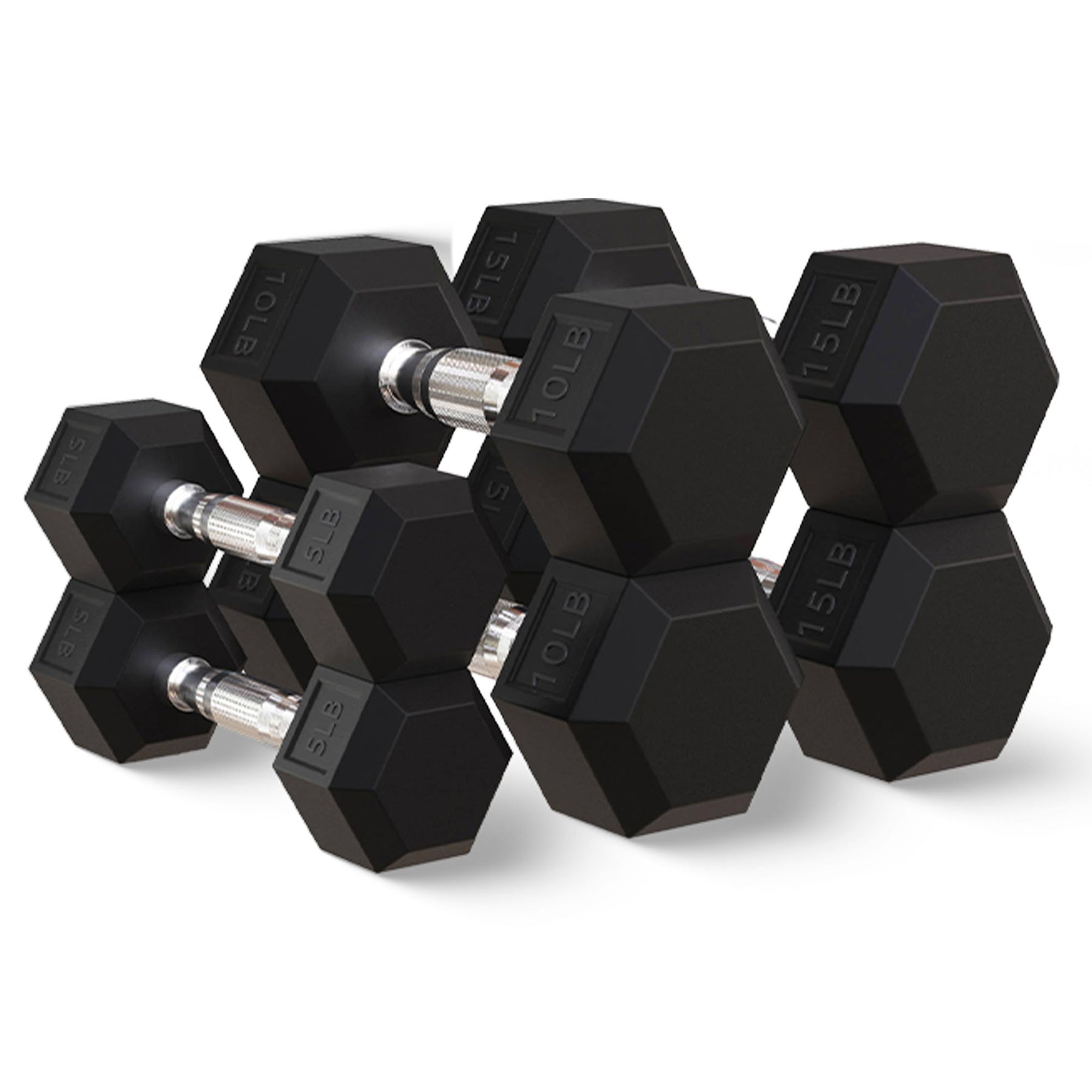 • Hexagonal rubber-encased heads prevent rolling and make storage easy, allowing you to focus on your exercises without interruptions