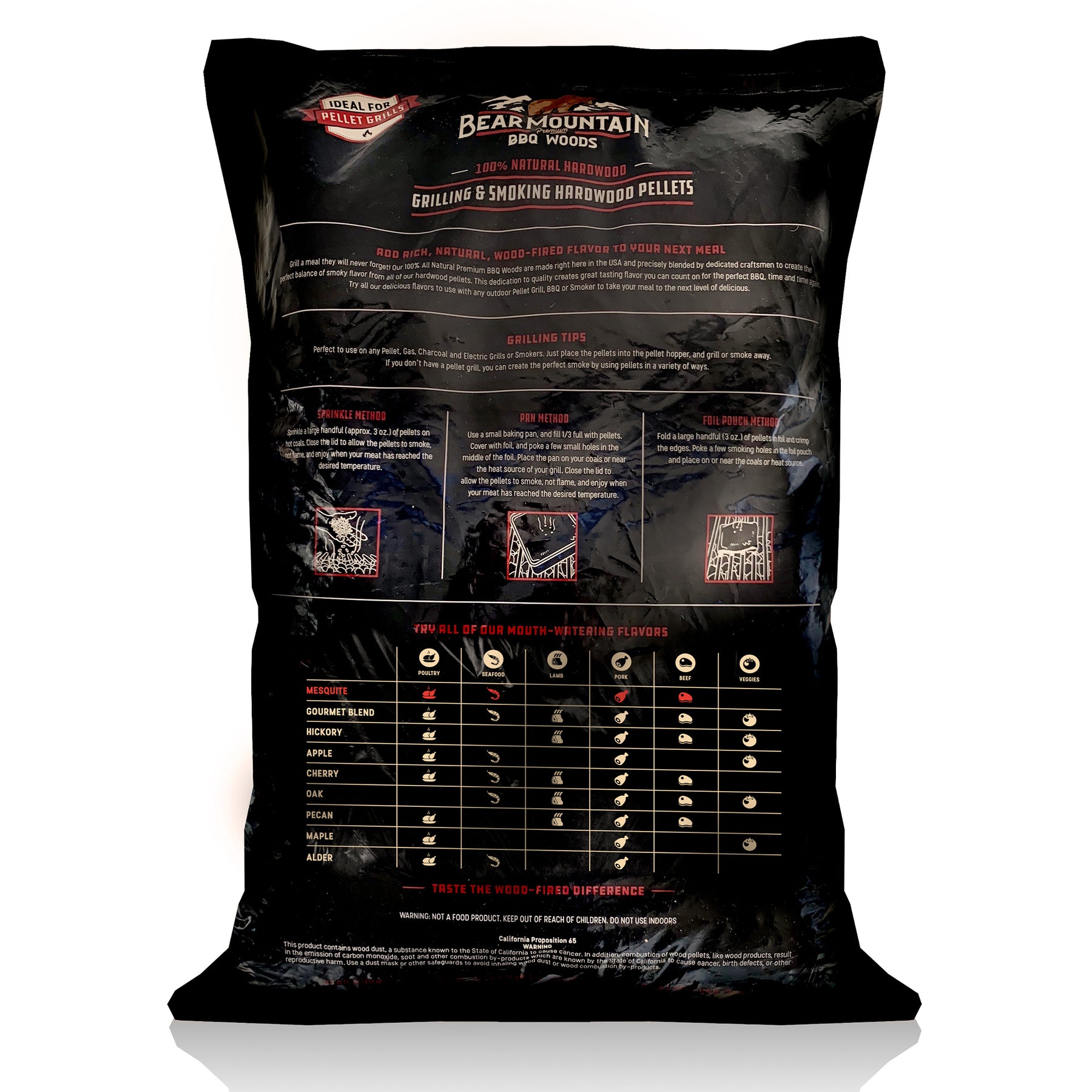 - Mesquite BBQ pellets add a smooth, smoky flavor to your favorite red meat, fish, pork, or poultry dish